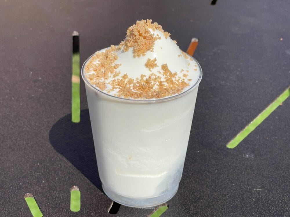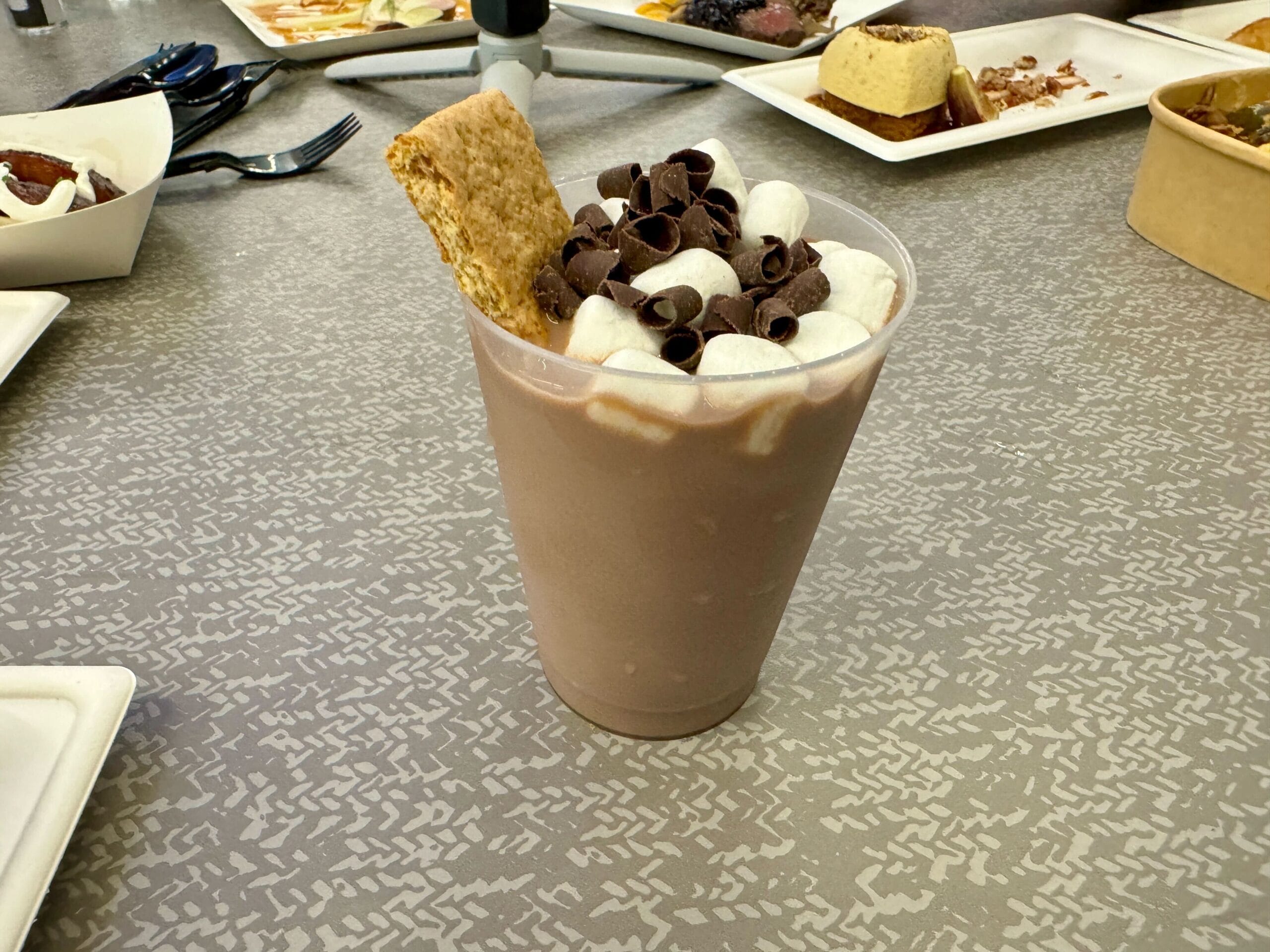 This is a fun and delicious option for adults and kids alike. It’s a pleasant chocolate milk slushy topped with a Graham cracker piece and mini marshmallows. We would definitely get this again.