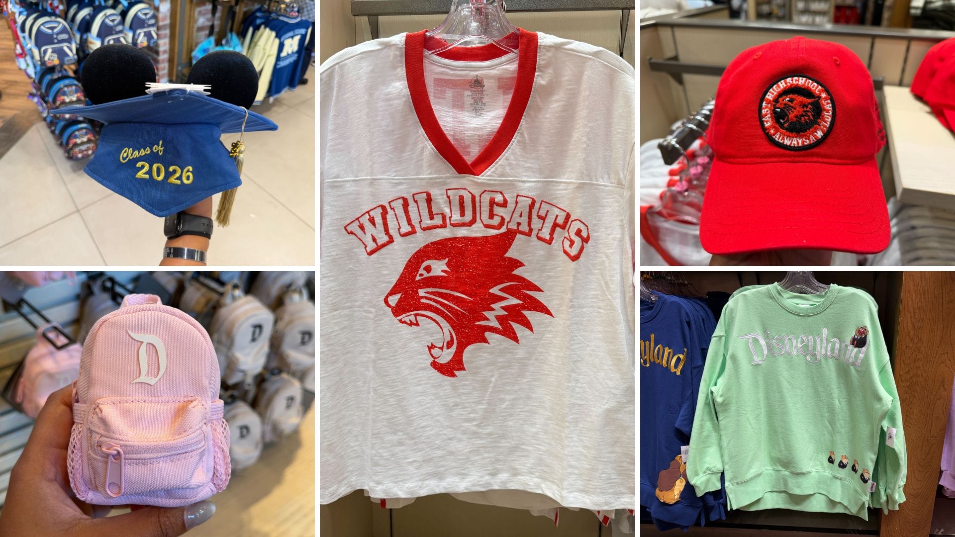 New merchandise at Disneyland Resort this week includes a Zootopia sweatshirt, High School Musical jersey and ball cap, tiny backpack bag charms, class of 2026 ears, and more! We found all of these items in World of Disney at Downtown Disney District.