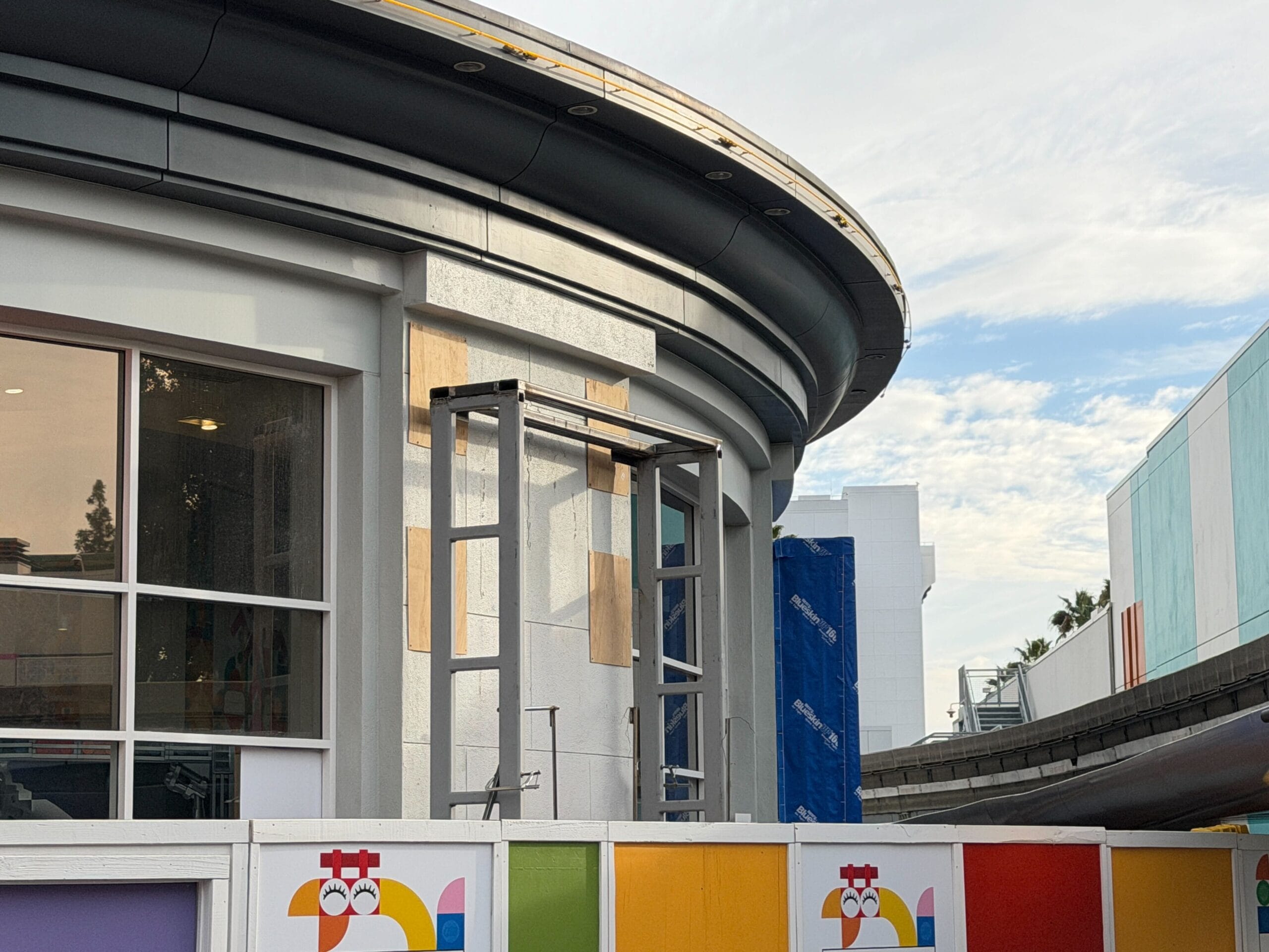 Despite recent completed refurbishments, wall still surround parts of the LEGO Store in Downtown Disney at Disneyland.