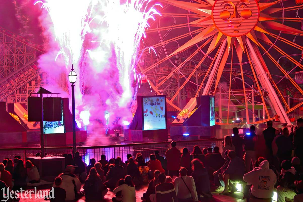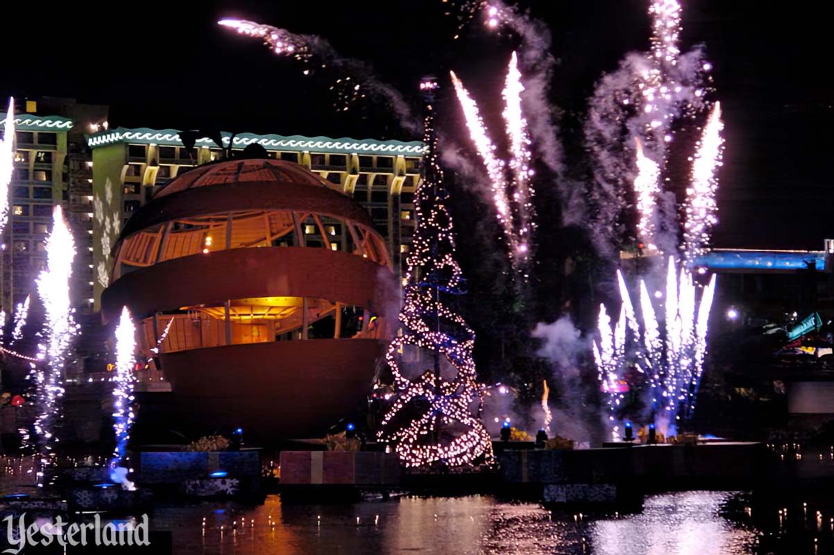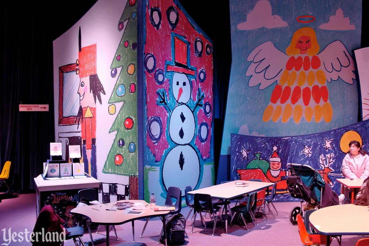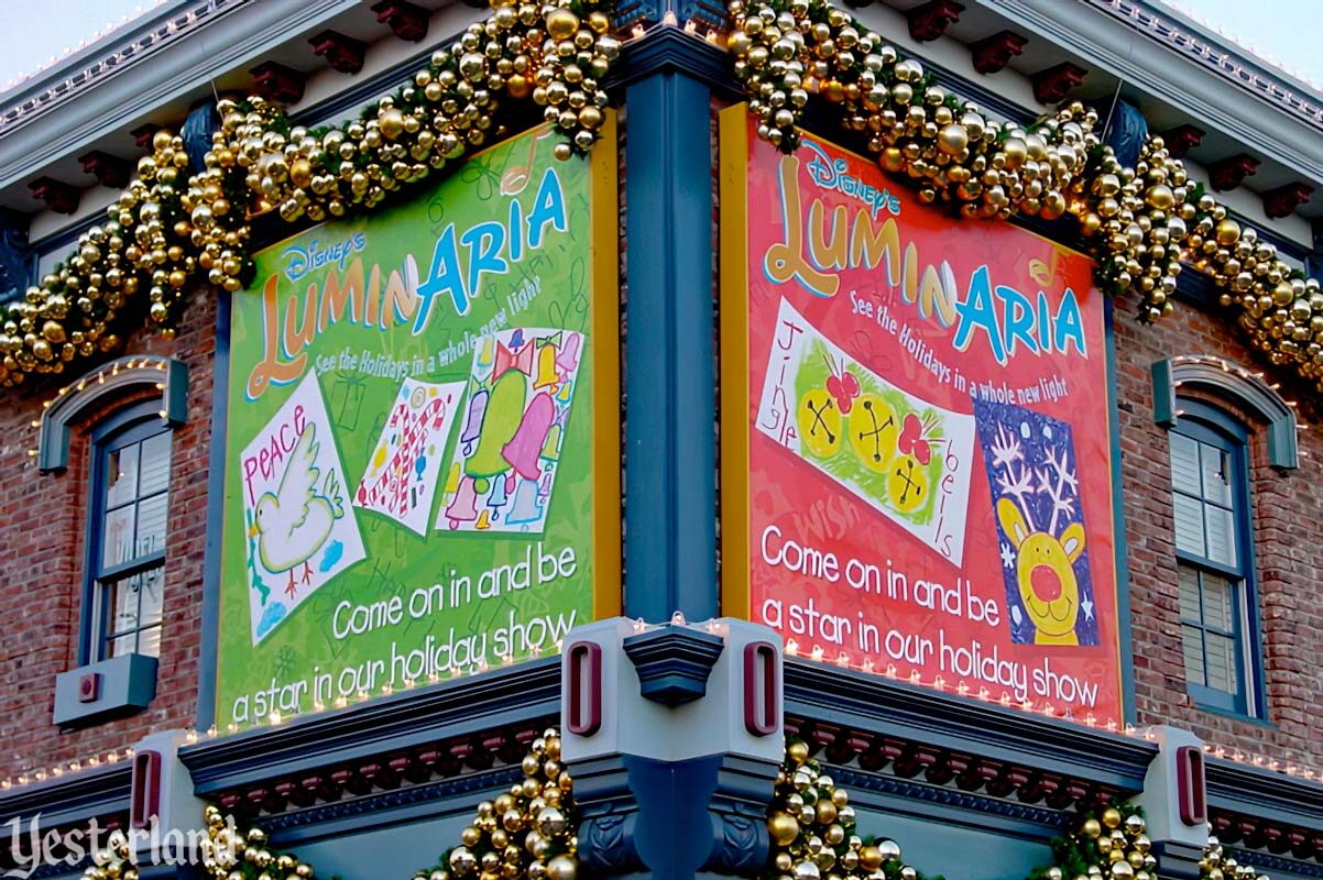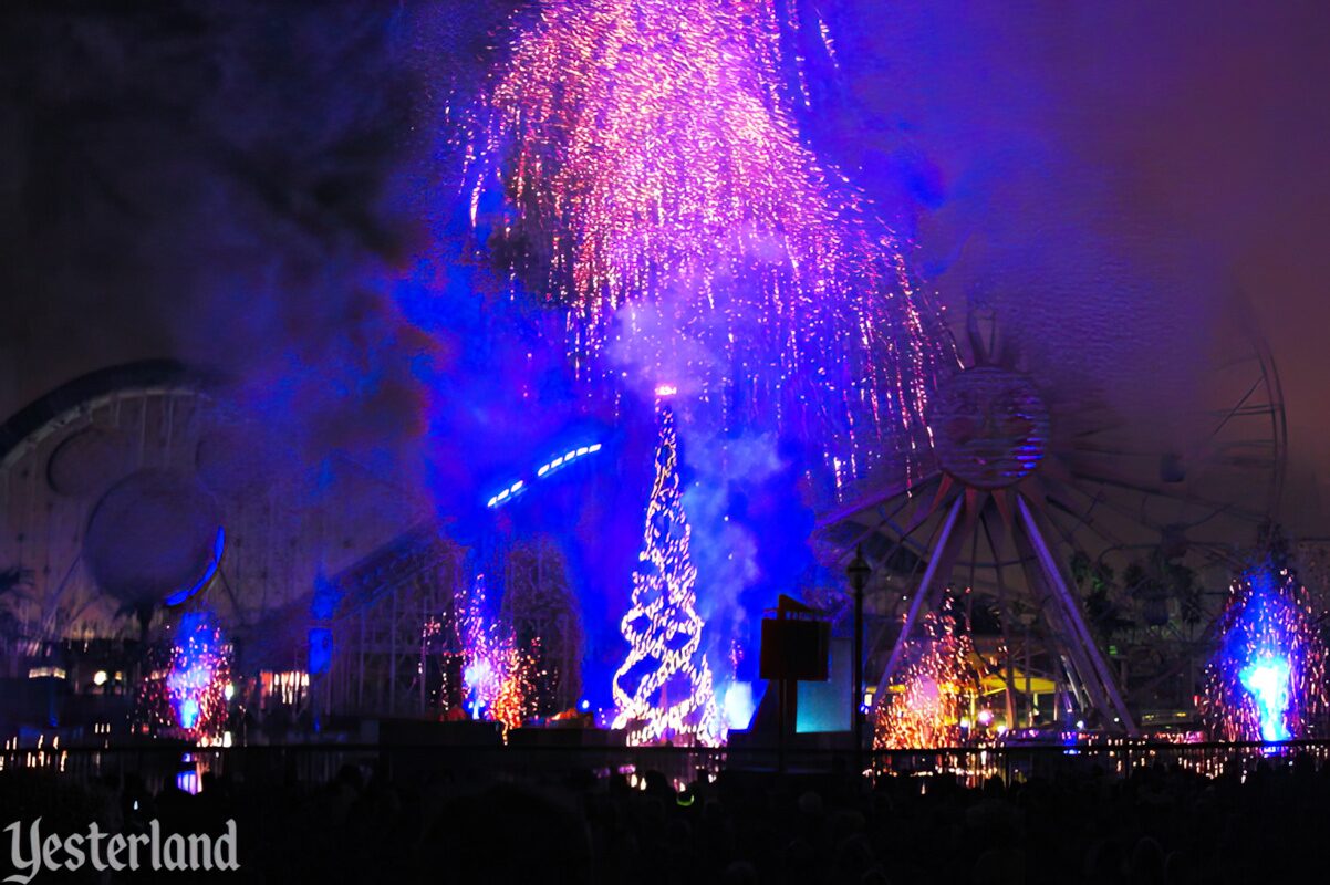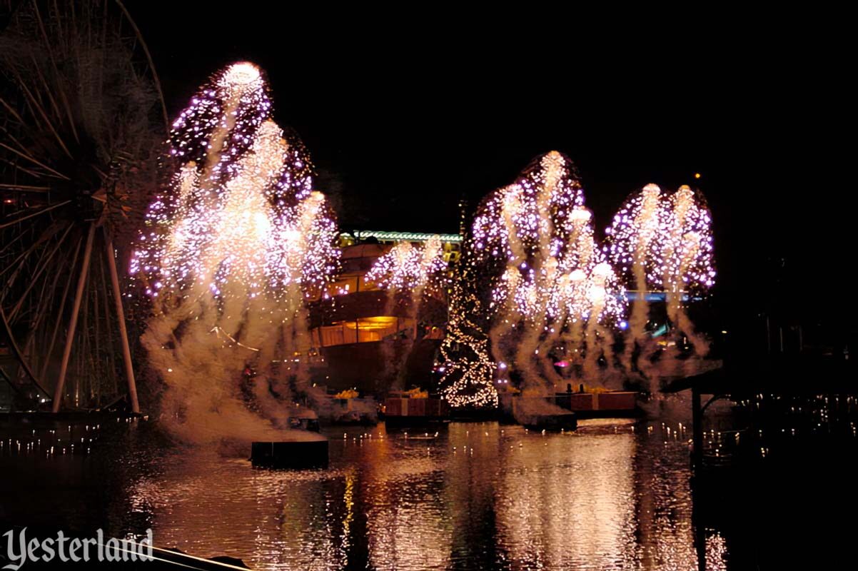 LuminAria was Disney California Adventure’s very first first holiday nighttime spectacular. It took place in Paradise Bay and featured low-level fireworks alongside the choreographed fountains, plus an interactive element: video screens displaying “holiday cards” that guests illustrated throughout the day.