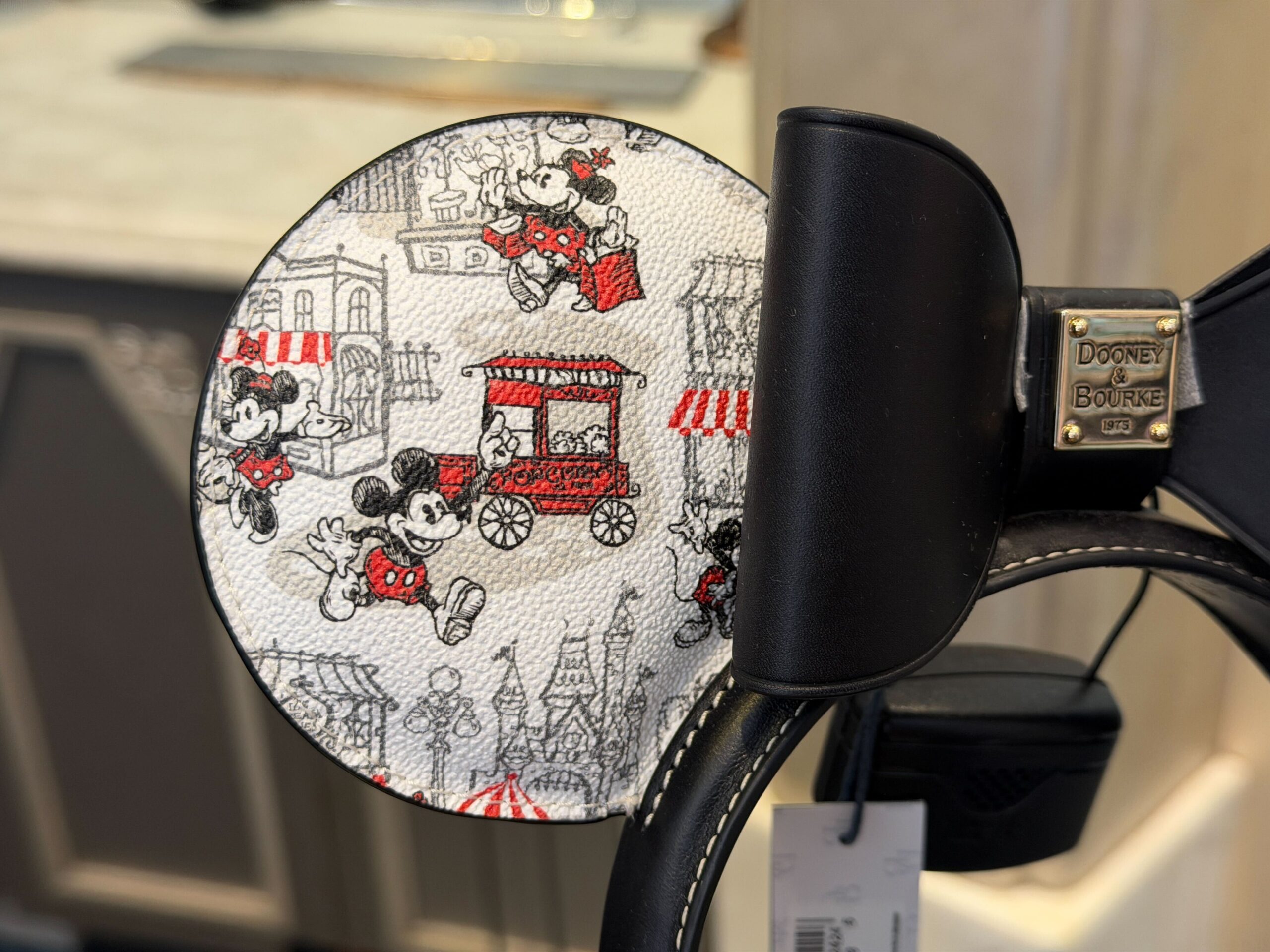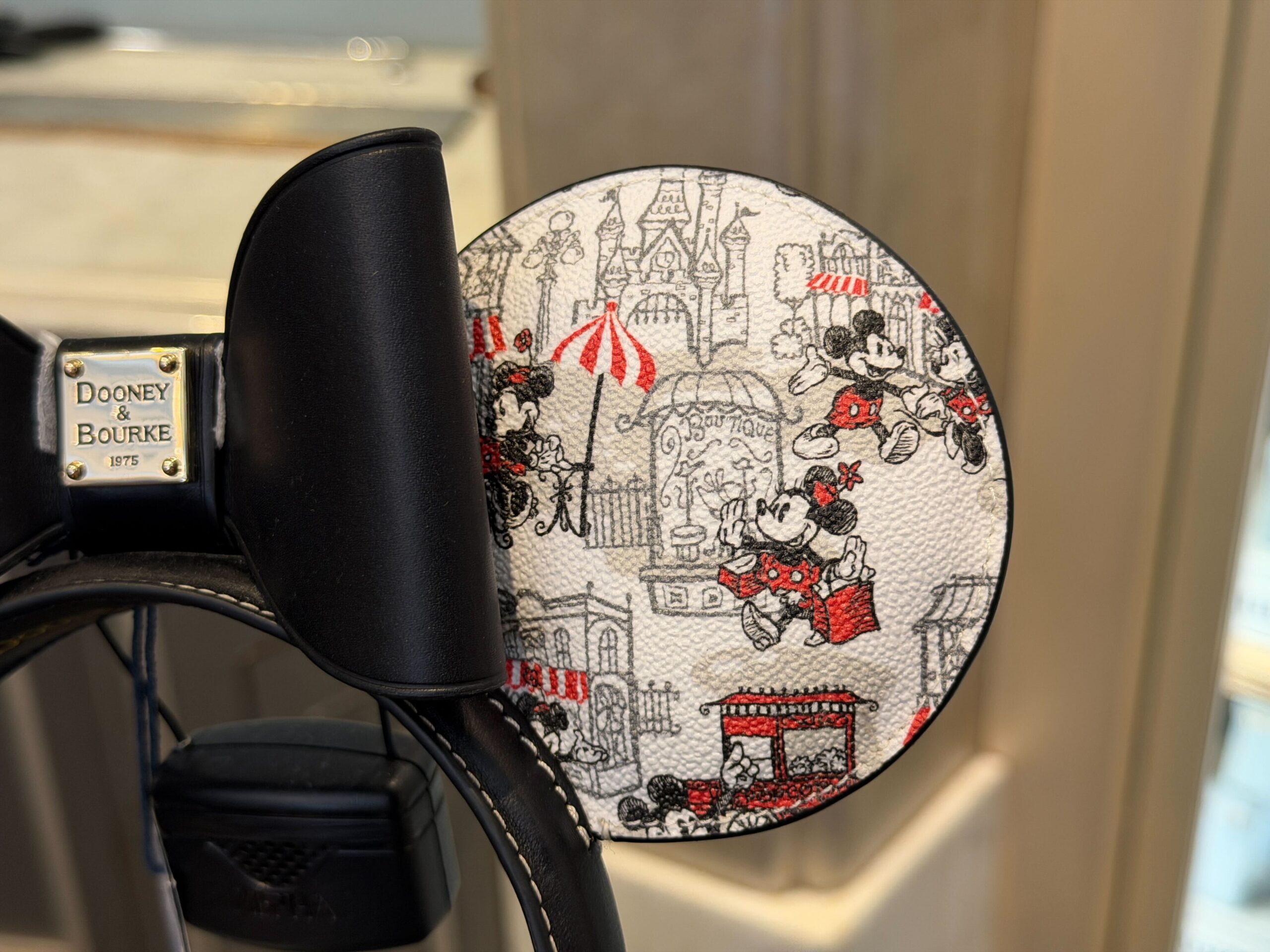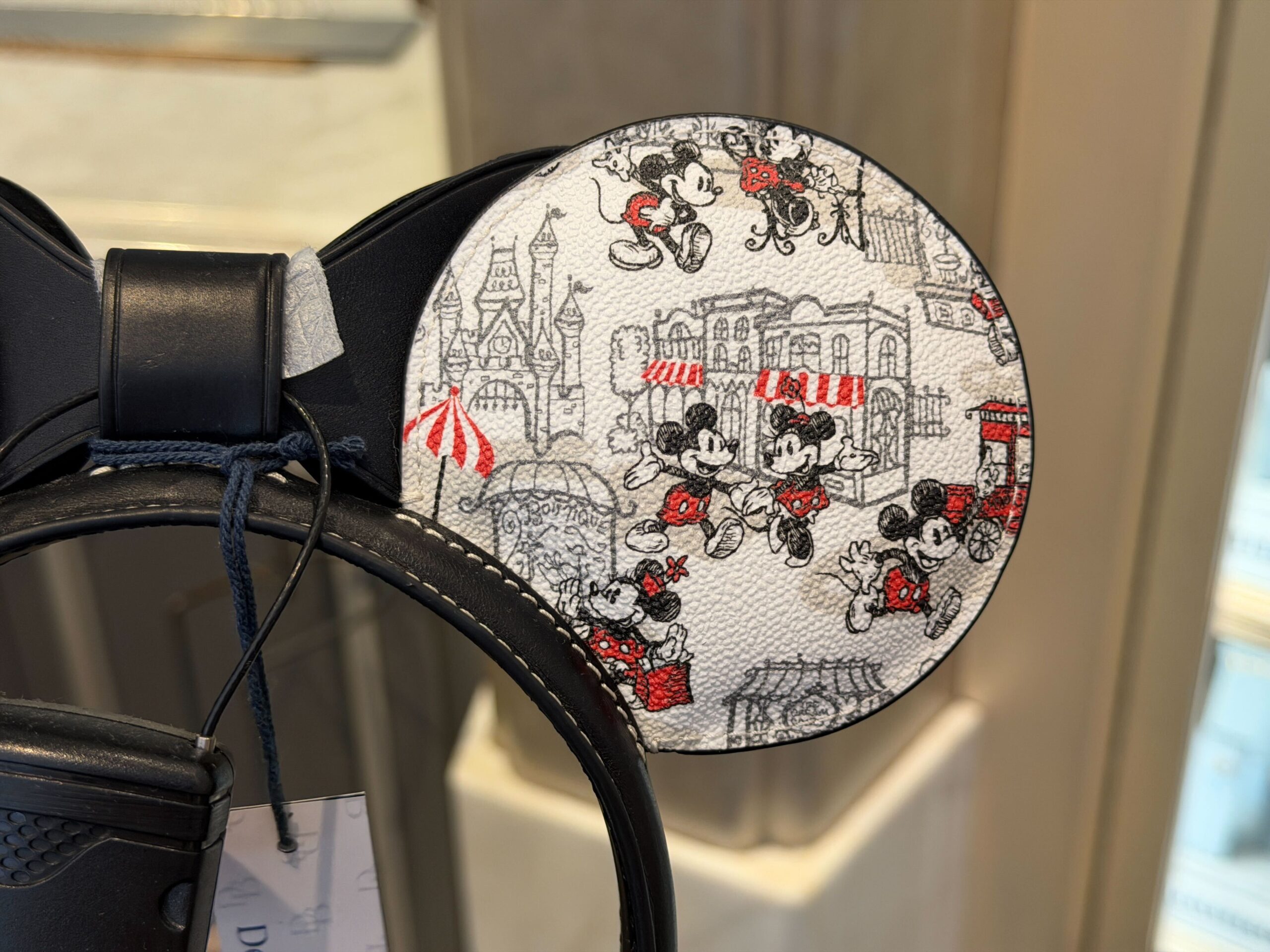 A new ear headband by Dooney & Bourke features Mickey and Minnie Mouse in a Main Street scene.