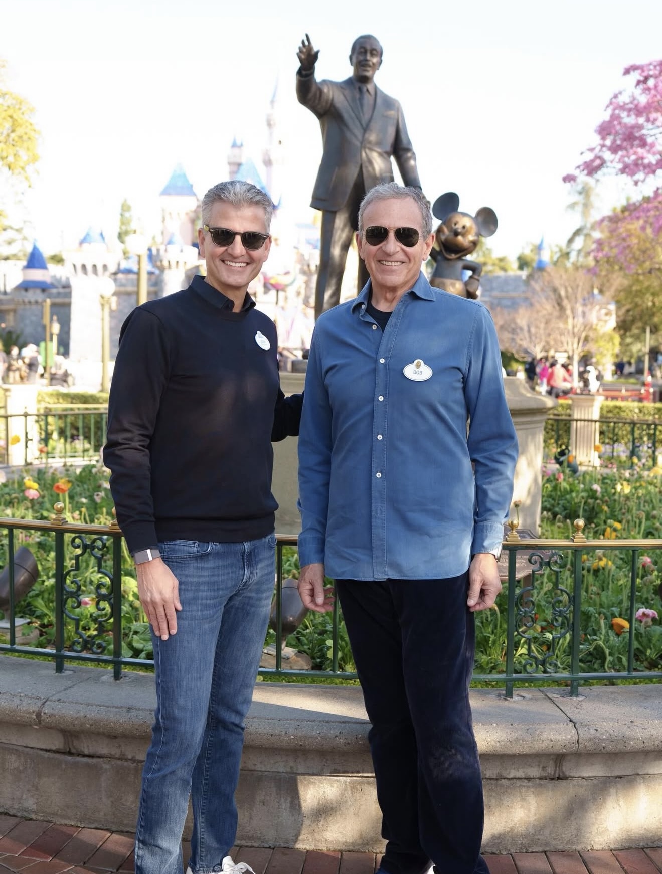 The pair posed in front of Sleeping Beauty Castle and the Partner Statue. In the post, Iger states: