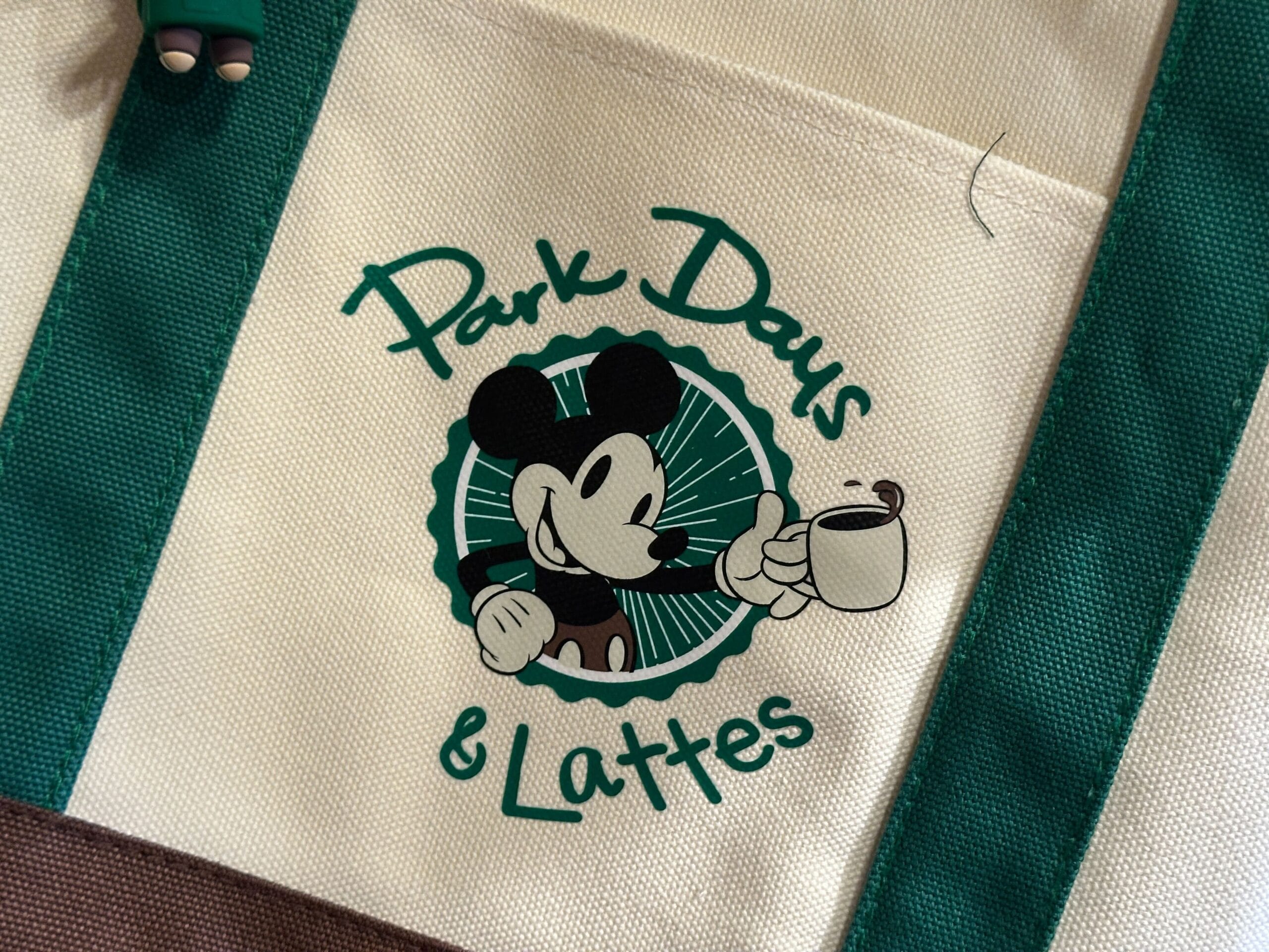 A thick canvas tote bag has joined the Park Days & Lattes Starbucks collection at Walt Disney World Resort. This bag also includes a Bearista straw topper.