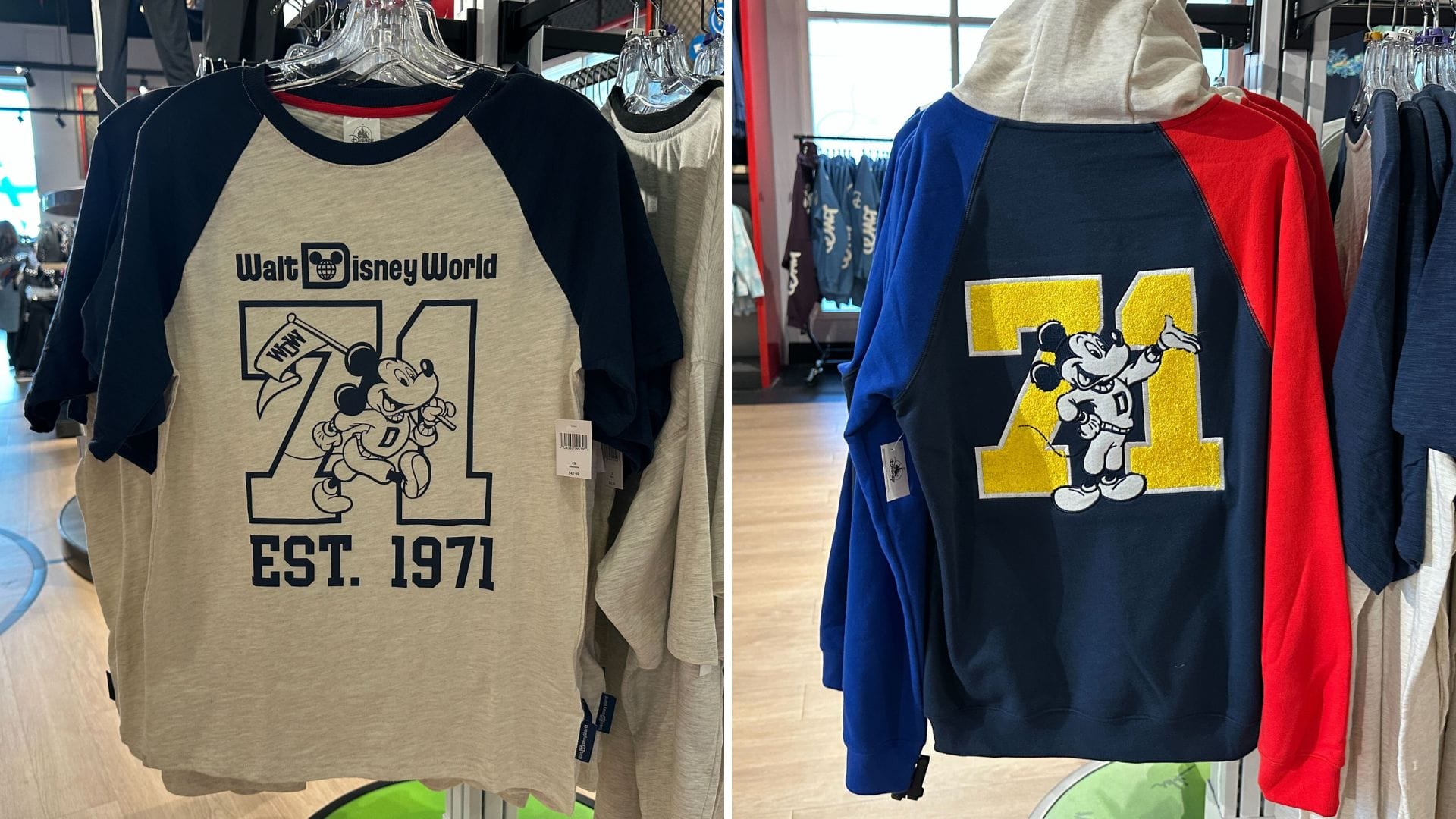 Celebrate the opening year of Walt Disney World with new retro apparel featuring Mickey Mouse. We found a raglan tee and a hoodie.