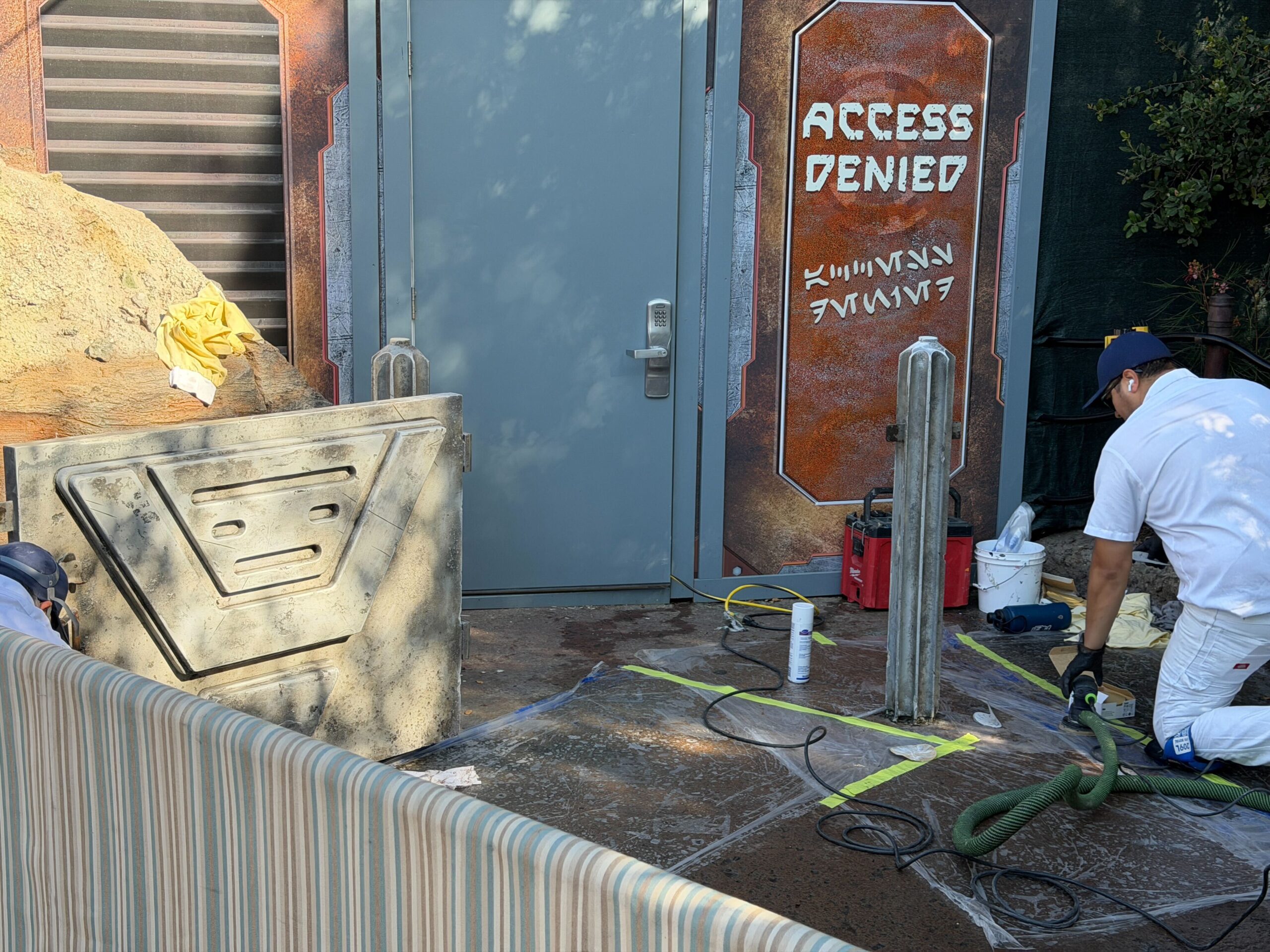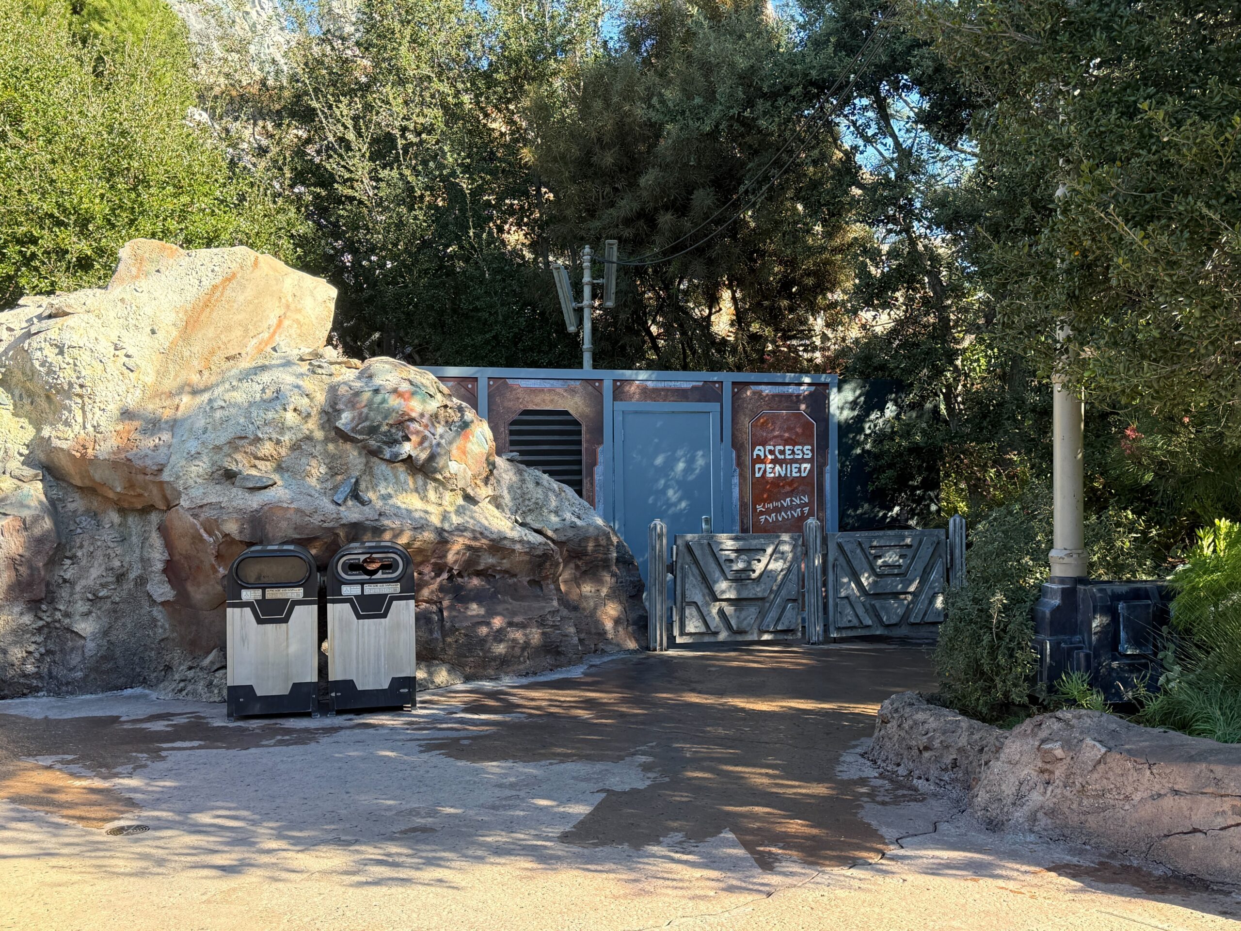 On our visit to the Disneyland Resort today February 3, we spotted two cast members working on the gates at the exit of Rise of the Resistance in Star Wars: Galaxy’s Edge. The exit of the ride is to the right of Resistance Supply.