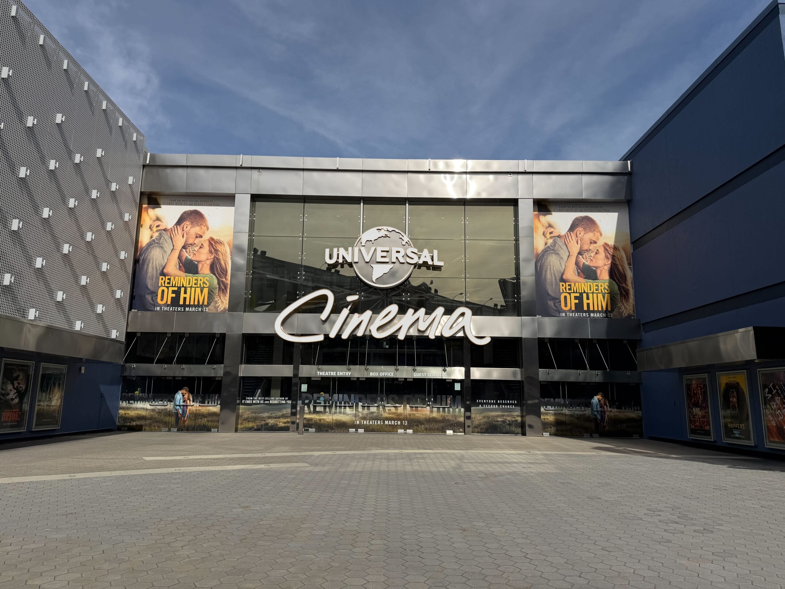 During our recent visit to Universal Studios Hollywood, we noticed a few construction projects throughout CityWalk. The Universal Cinema also has new posters and decals for an upcoming film.
