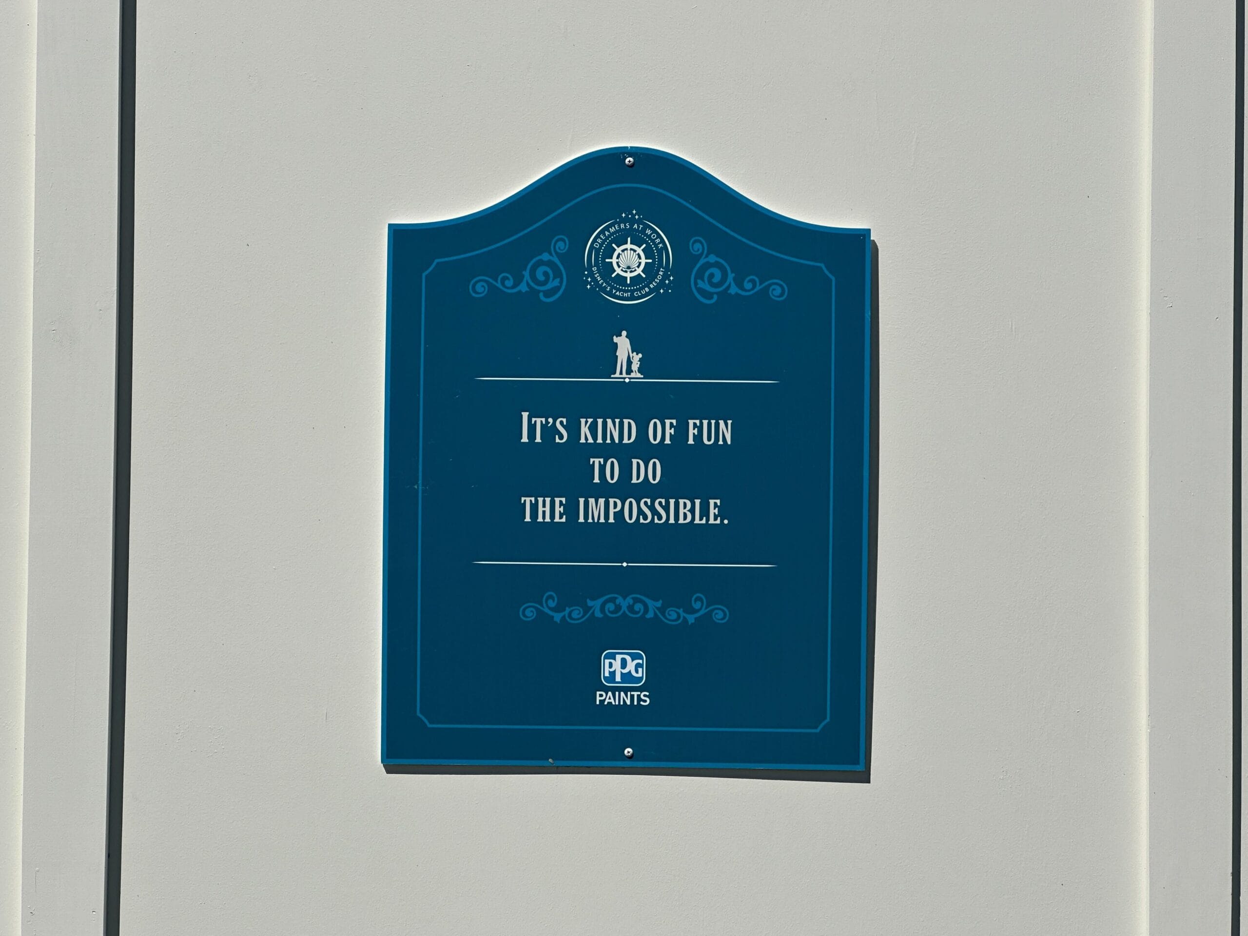 Signs on the walls read “It’s kind of fun to do the impossible” and “I can never stand still. I must explore and experiment.”