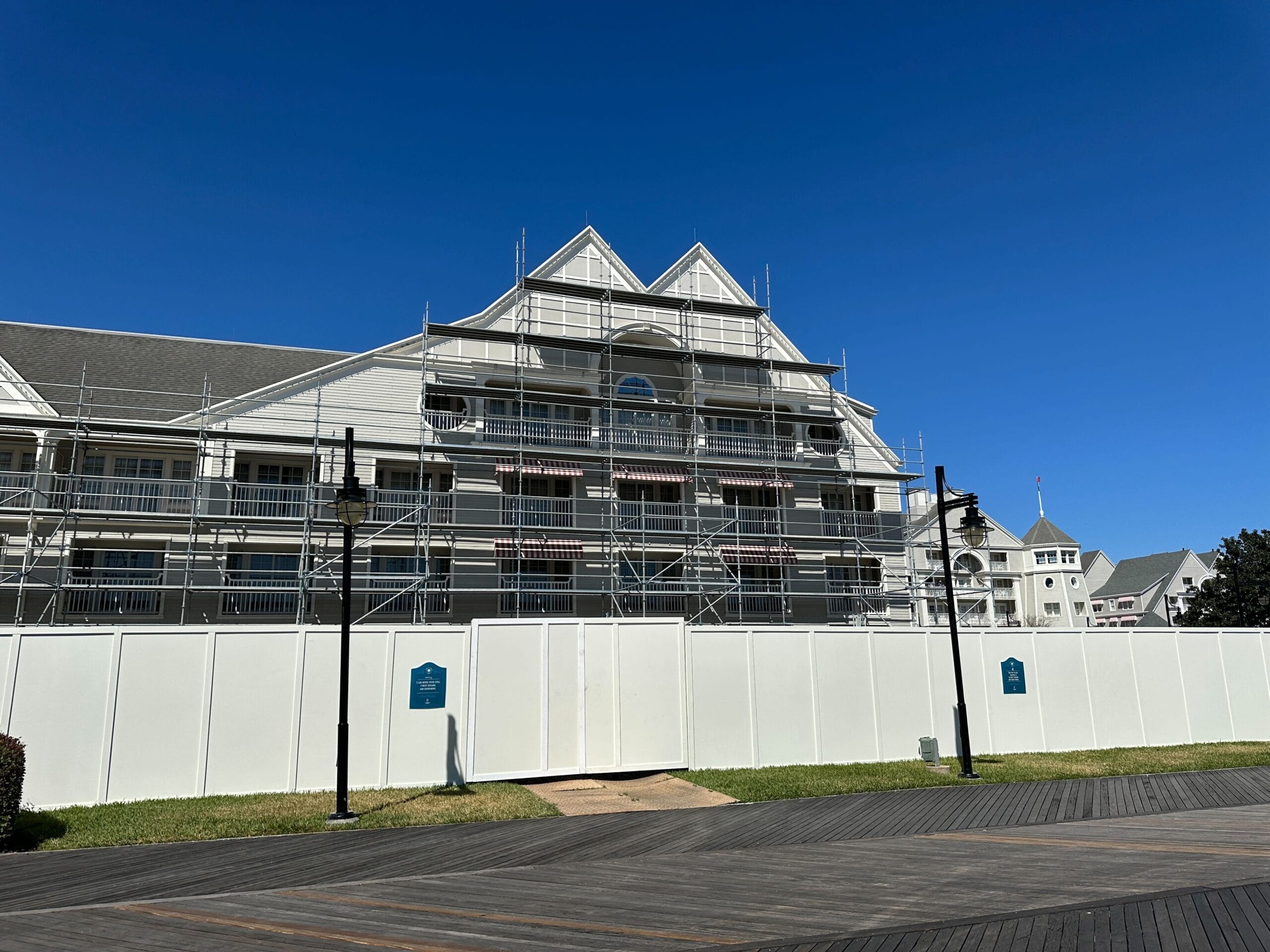 Disney previously announced exterior maintenance on both Yacht and Beach Club Resorts was planned through October 2025. Then, they announced it would last until late 2026, and Disney’s Beach Club Resort will undergo work through 2027.