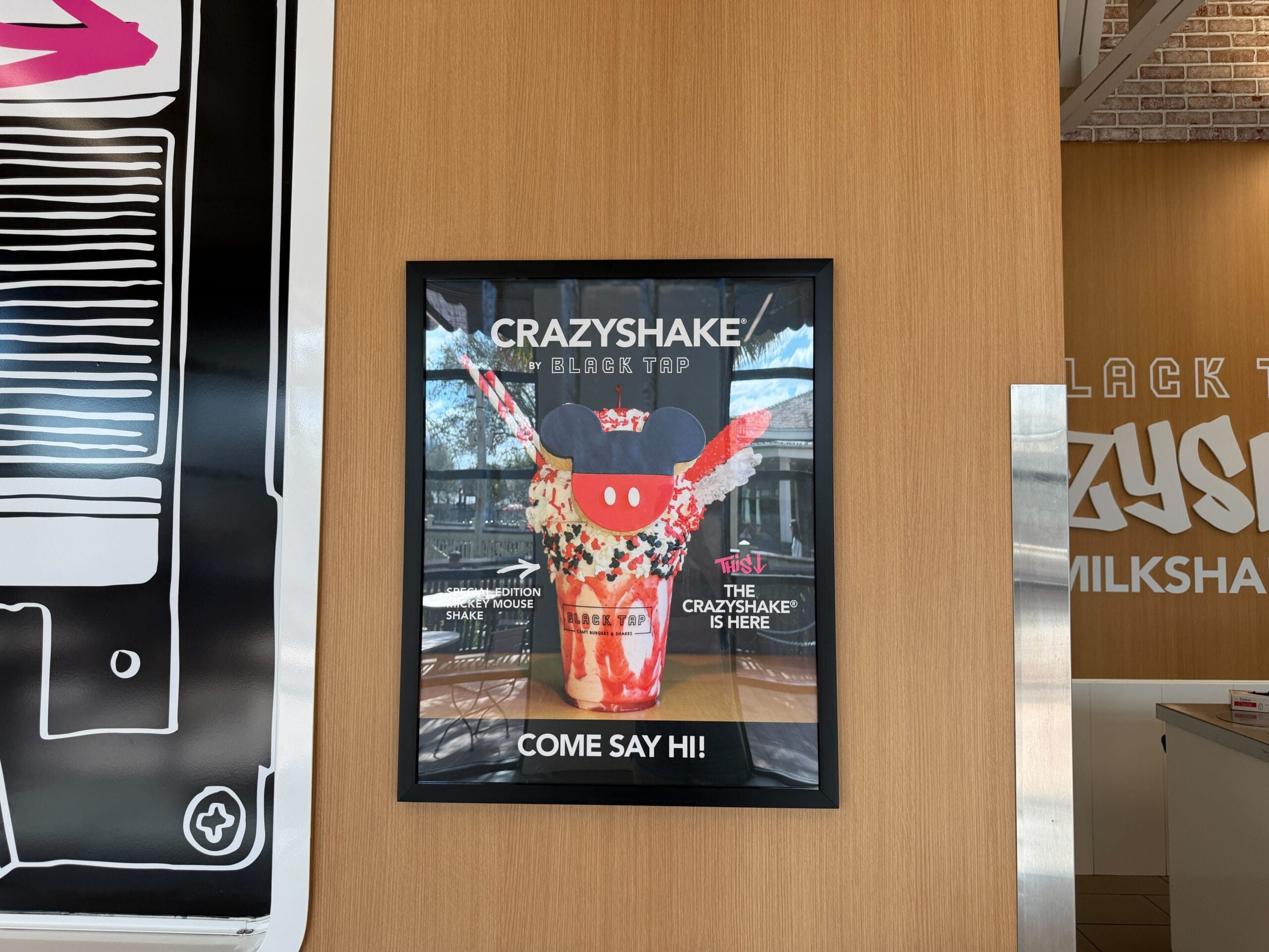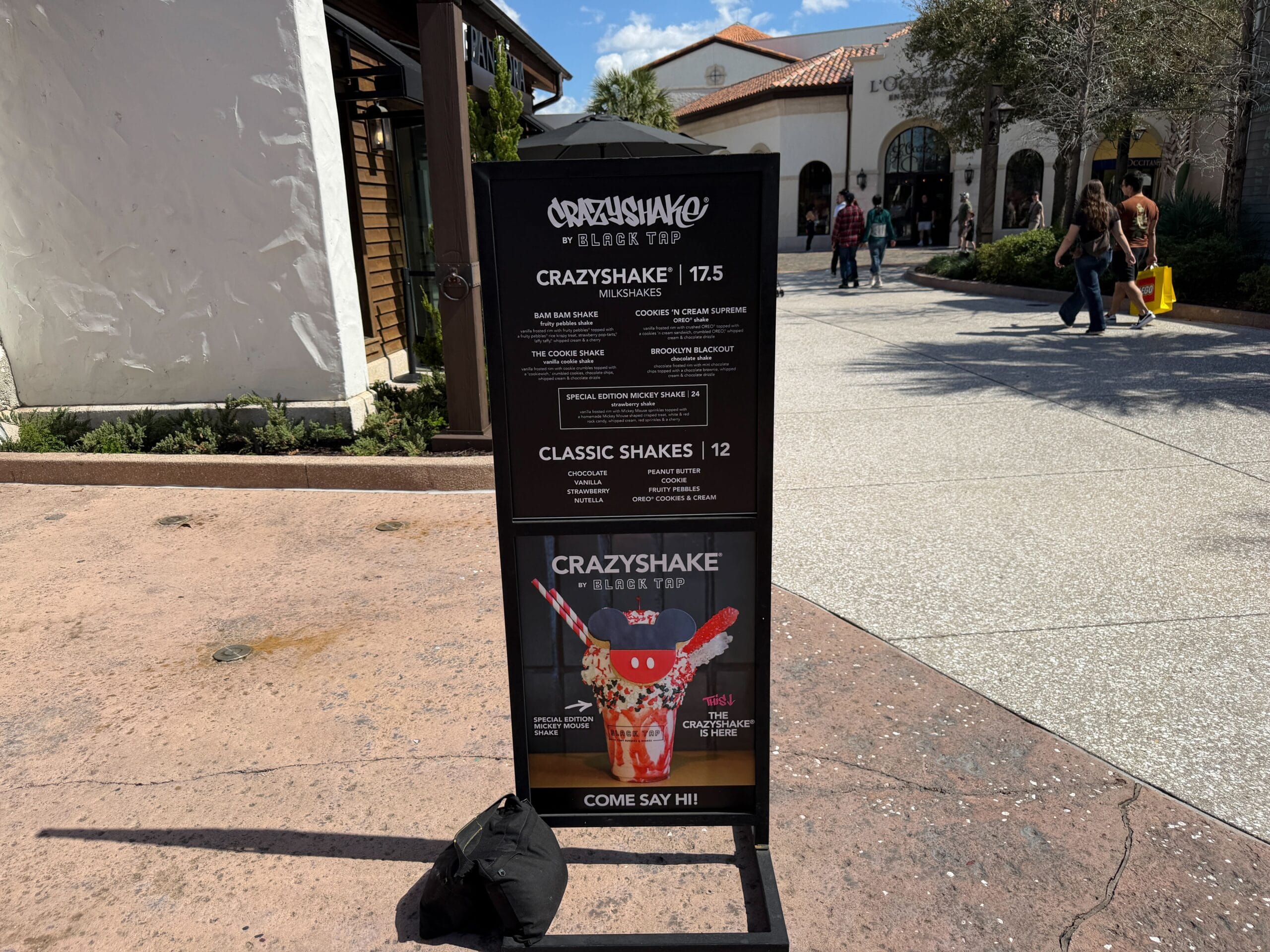 Disney announced the CrazyShake pop-up a few weeks ago. A sign was installed within a few days and the menu was revealed. As previously announced, the location offers the Special Edition Mickey Mouse Shake.