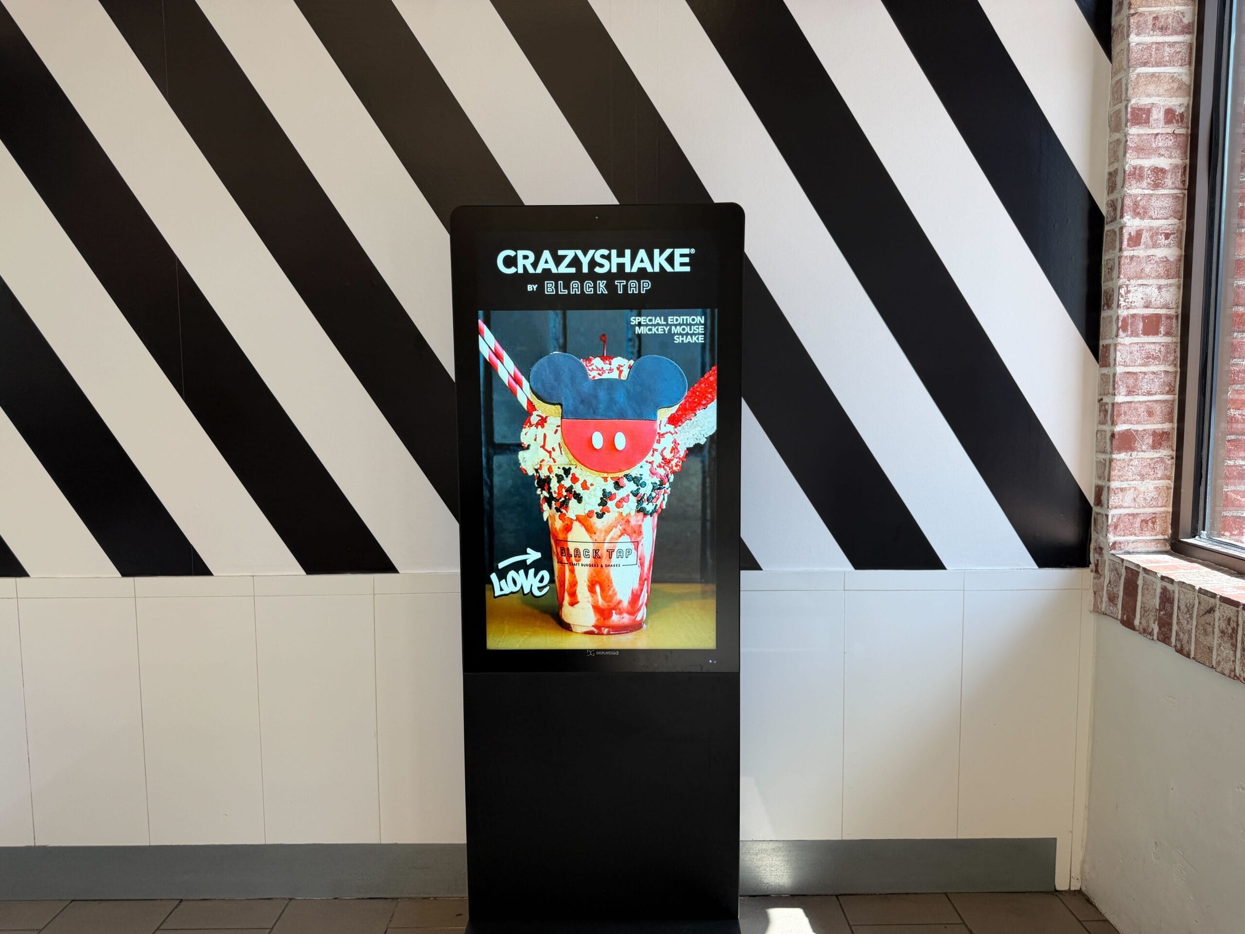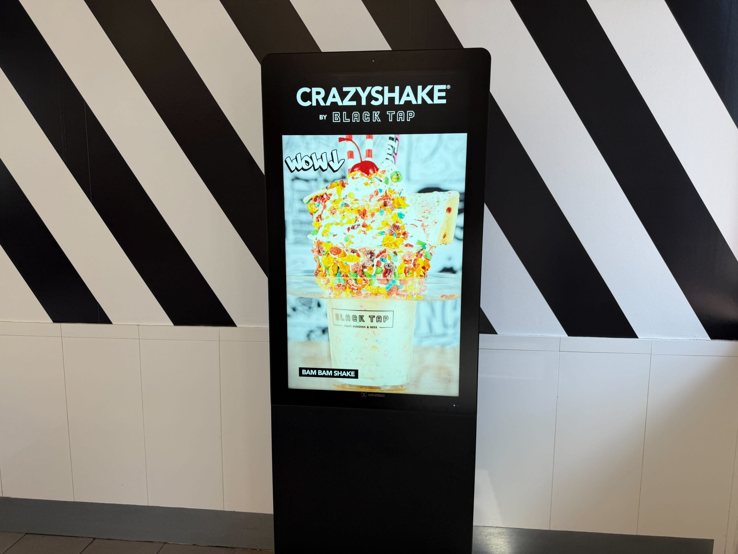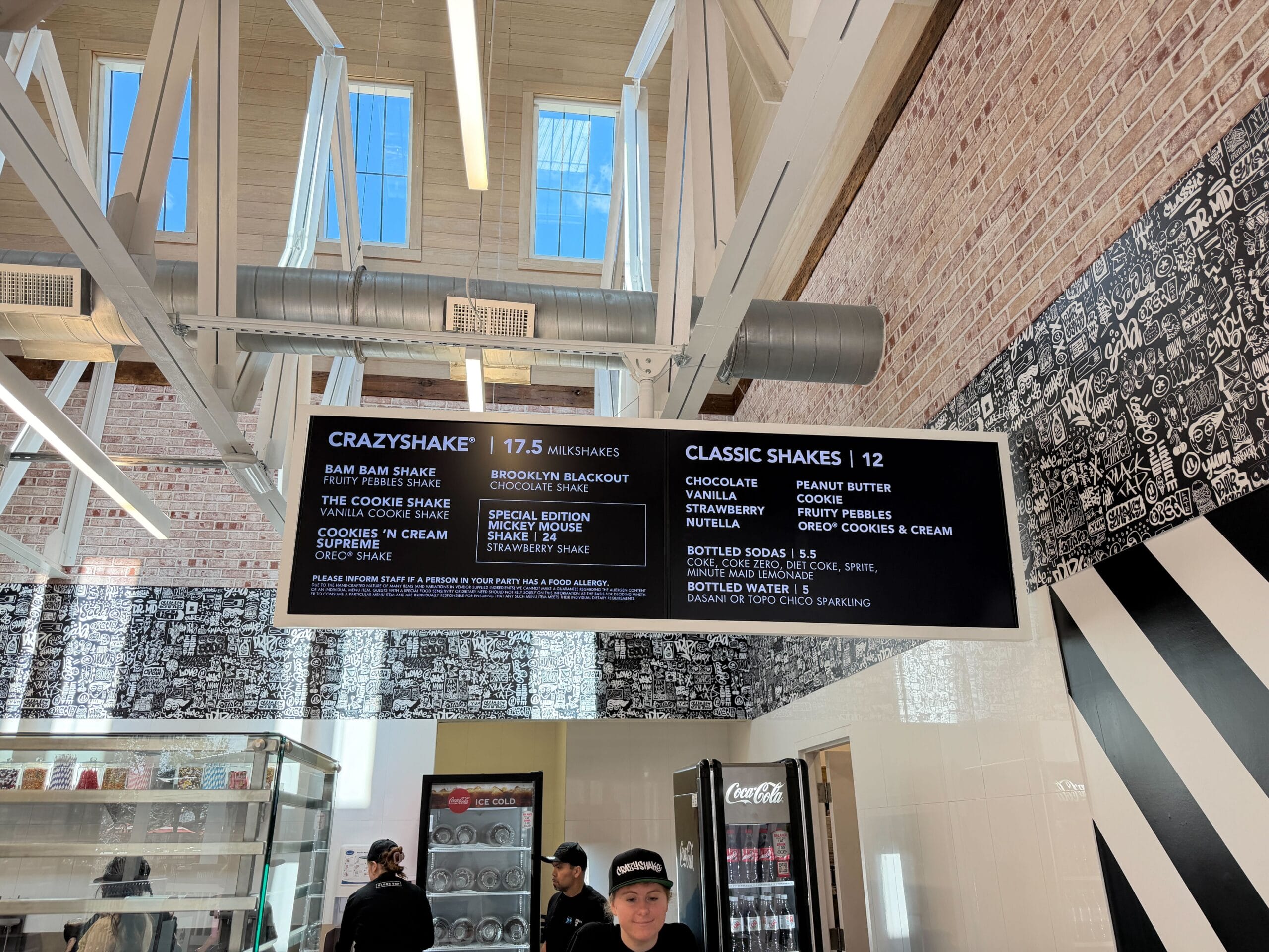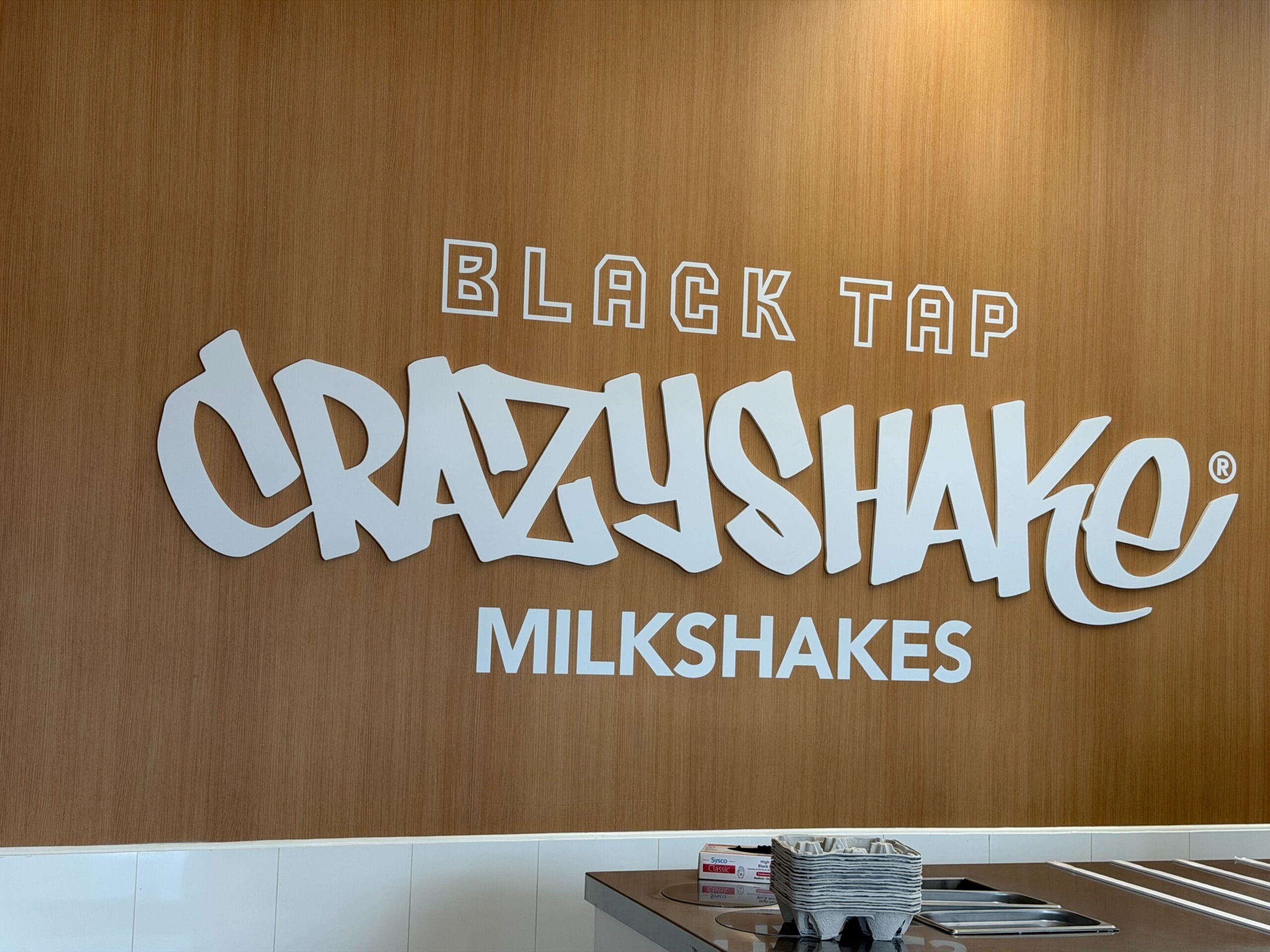 Behind the counter is a “Black Tap CrazyShakes Milkshakes” sign.