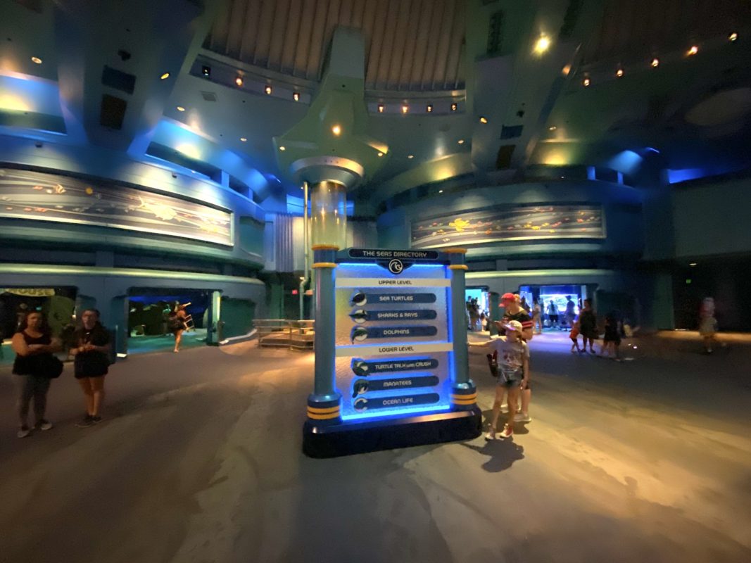 The Seas with Nemo and Friends has had several updates as part of the overall EPCOT renovation and refresh. Come along with us and check them out! To help navigate all the temporary construction walls and moveable rolling hedges, a new column sign has been placed outside. The sign points the way to The Seas …