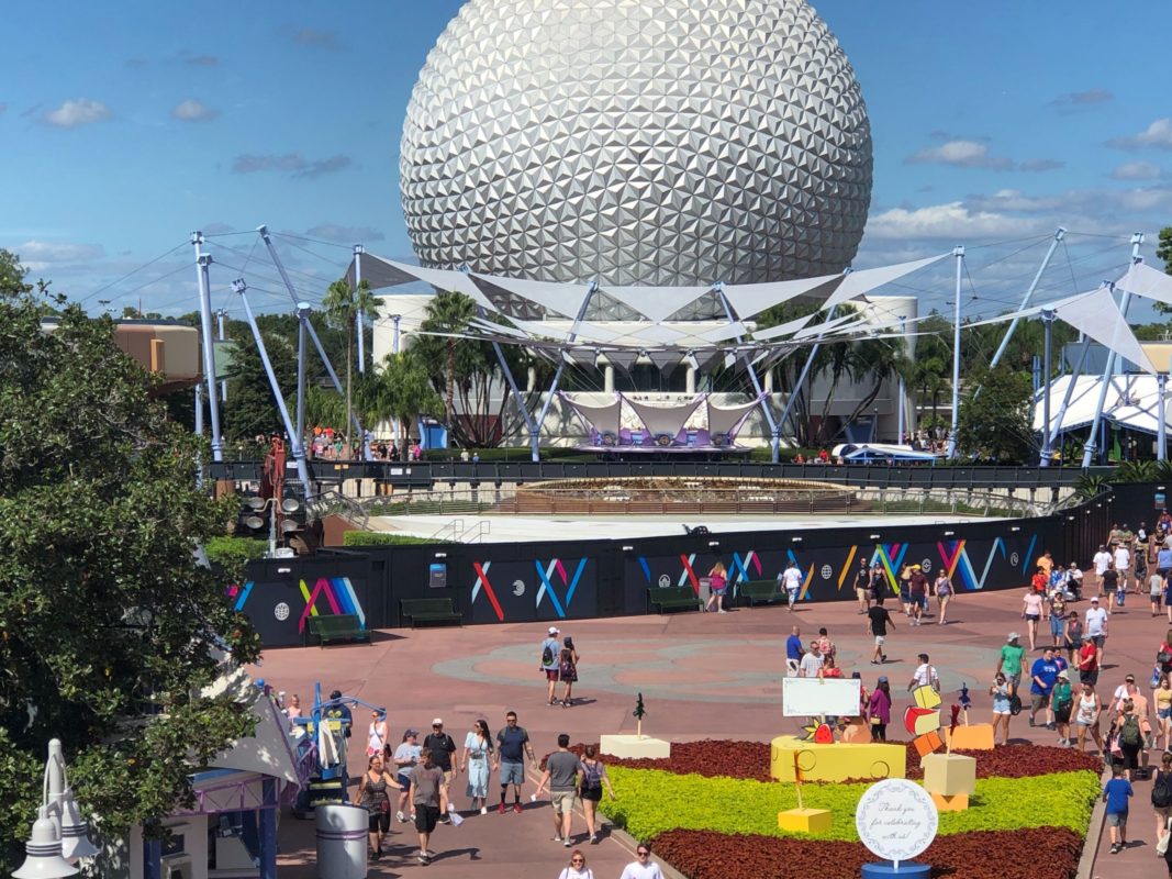 It’s another beautiful day here at EPCOT! It’s a busy holiday weekend, and the crowds have been growing steadily all morning. Let’s take a look at what’s happening around the park today. A little look from above. First thing we encountered were Cast Members telling guests that Test Track was down and would be closed …