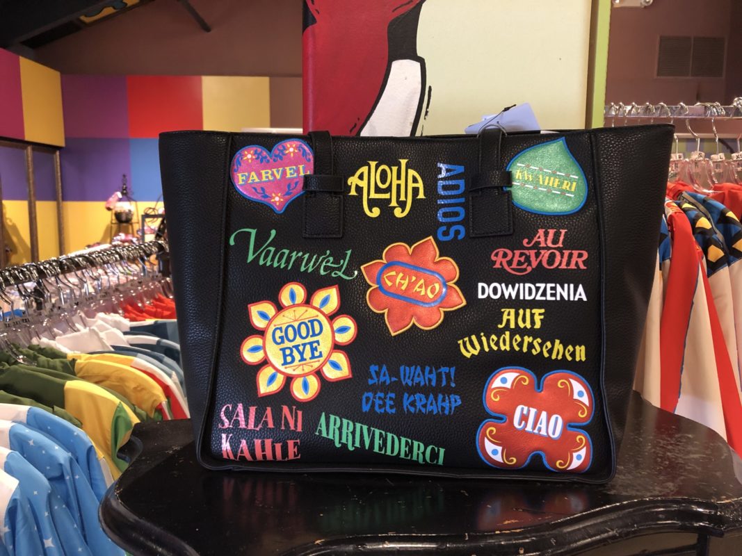 Say “hello” to a new Danielle Nicole bag! Or, better yet, learn to say “good bye” with the new “it’s a small world” inspired tote bag! We were visiting TrenD at Disney Springs today when this beautiful bag caught our eye. The bag features several signs from the end of the classic attraction. Ciao, Au …