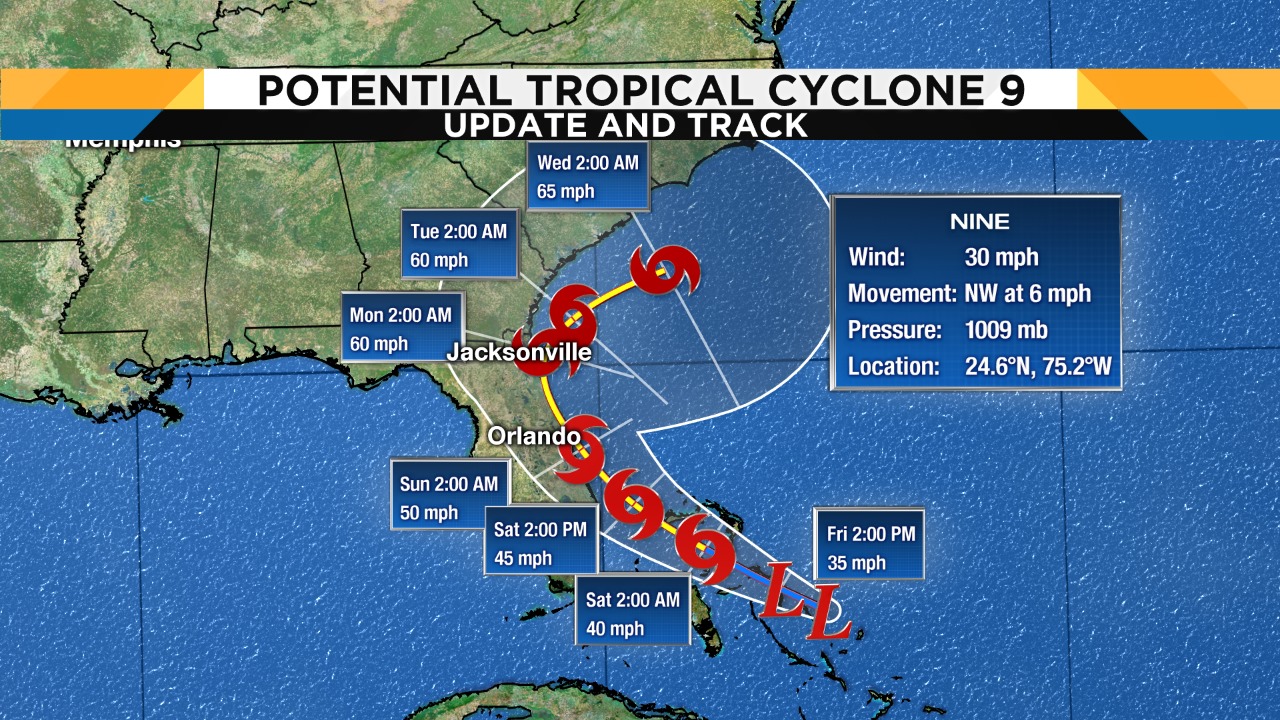Tropical Cyclone Nine Expected to Develop Into Tropical Storm This Weekend; Central Florida Within Cone