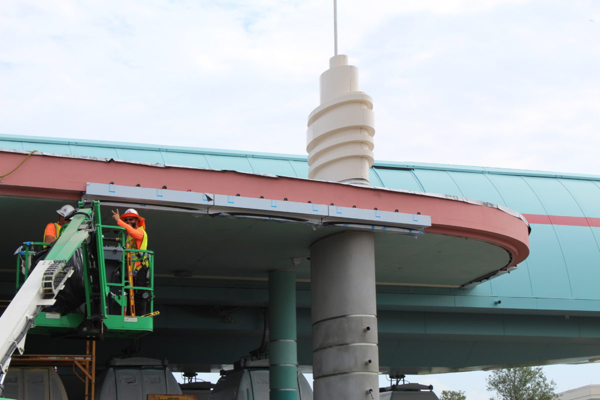 PHOTOS: Decorative Siding, Guest Railings Installed as Hollywood Studios Disney Skyliner Station Nears Completion