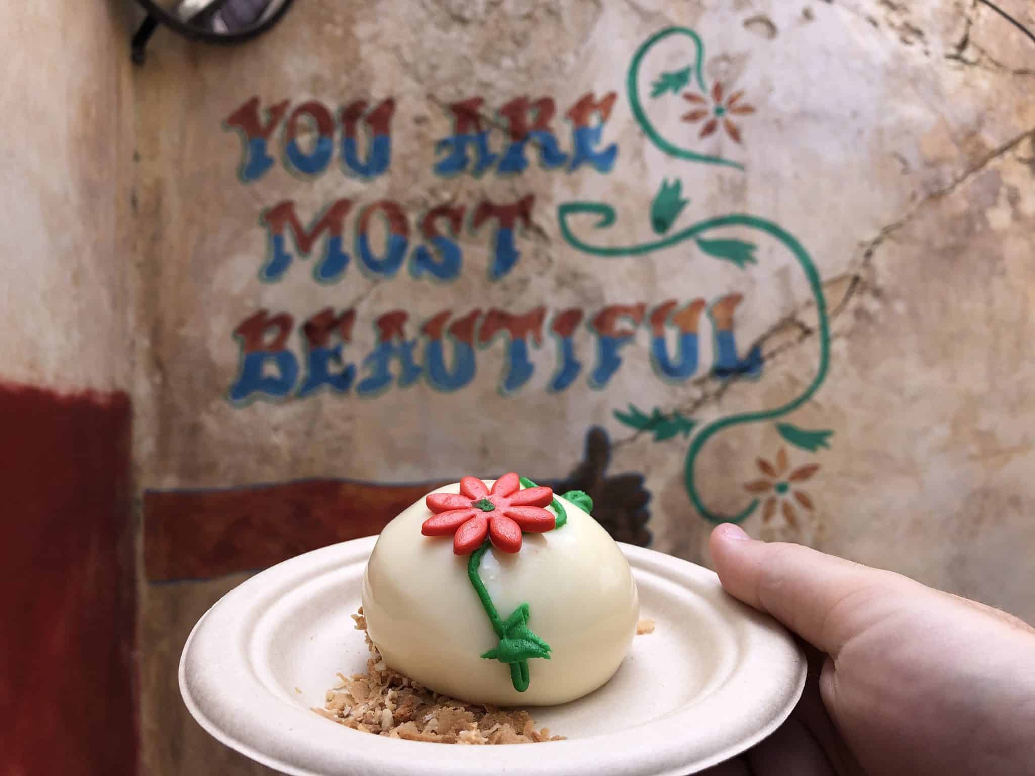 Disney has taken Instagrammable treats to a whole new level with this latest dessert nestled away in Harambe Market at Disney’s Animal Kingdom park. The “Most Beautiful” cake is said to be inspired by the popular “You Are Most Beautiful” mural… or as it’s more colloquially known, Instagram wall. Even the menu itself invites––no, instructs …