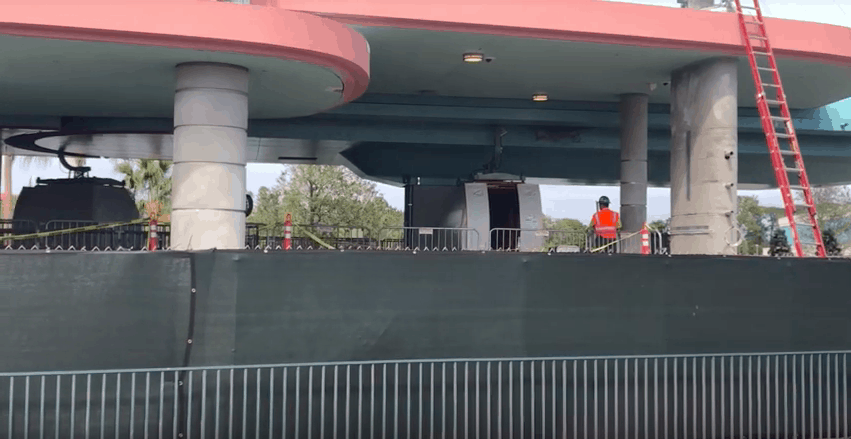 Just yesterday, we witnessed Disney Skyliner gondolas zooming across the parking lot at full speed over at Disney’s Hollywood Studios. We also got a closer look at their designs through the existing tarps. Today, we have an up-close look at the gondolas jetting out of the main station at Hollywood Studios, as well as door opening …