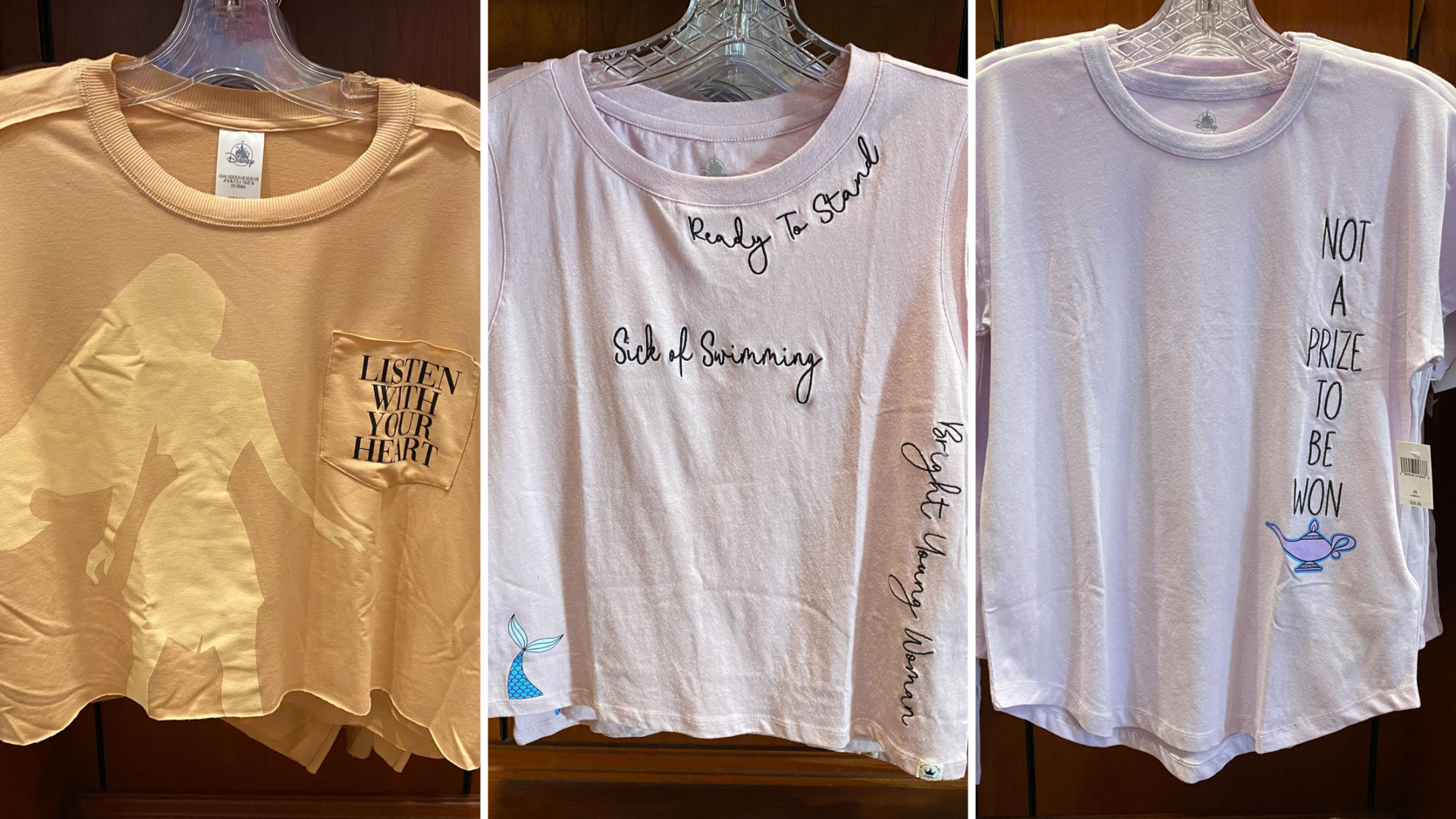New Princess Tiana, Pocahontas, Ariel, and Jasmine Shirts at Disneyland Resort