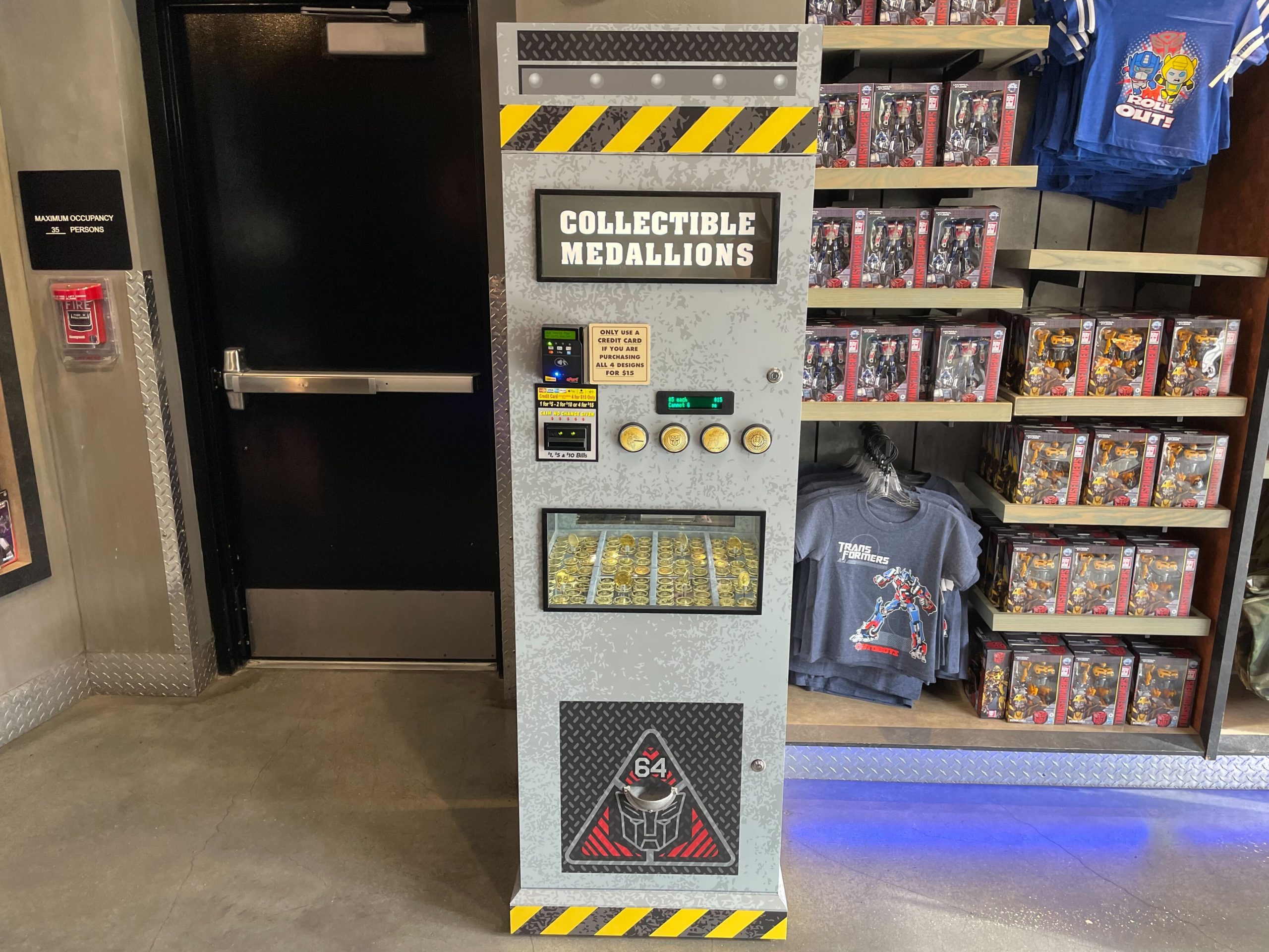 Transformers fans can collect new medallion coins from a machine in the Supply Vault next to Transformers: The Ride 3D ...