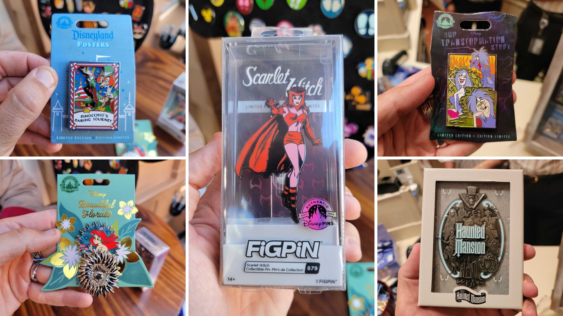 New limited edition Pinocchio’s Daring Journey, Ariel, and Madame Mim pins, plus some Marvel FiGPiNs, and several The Haunted Mansion ...