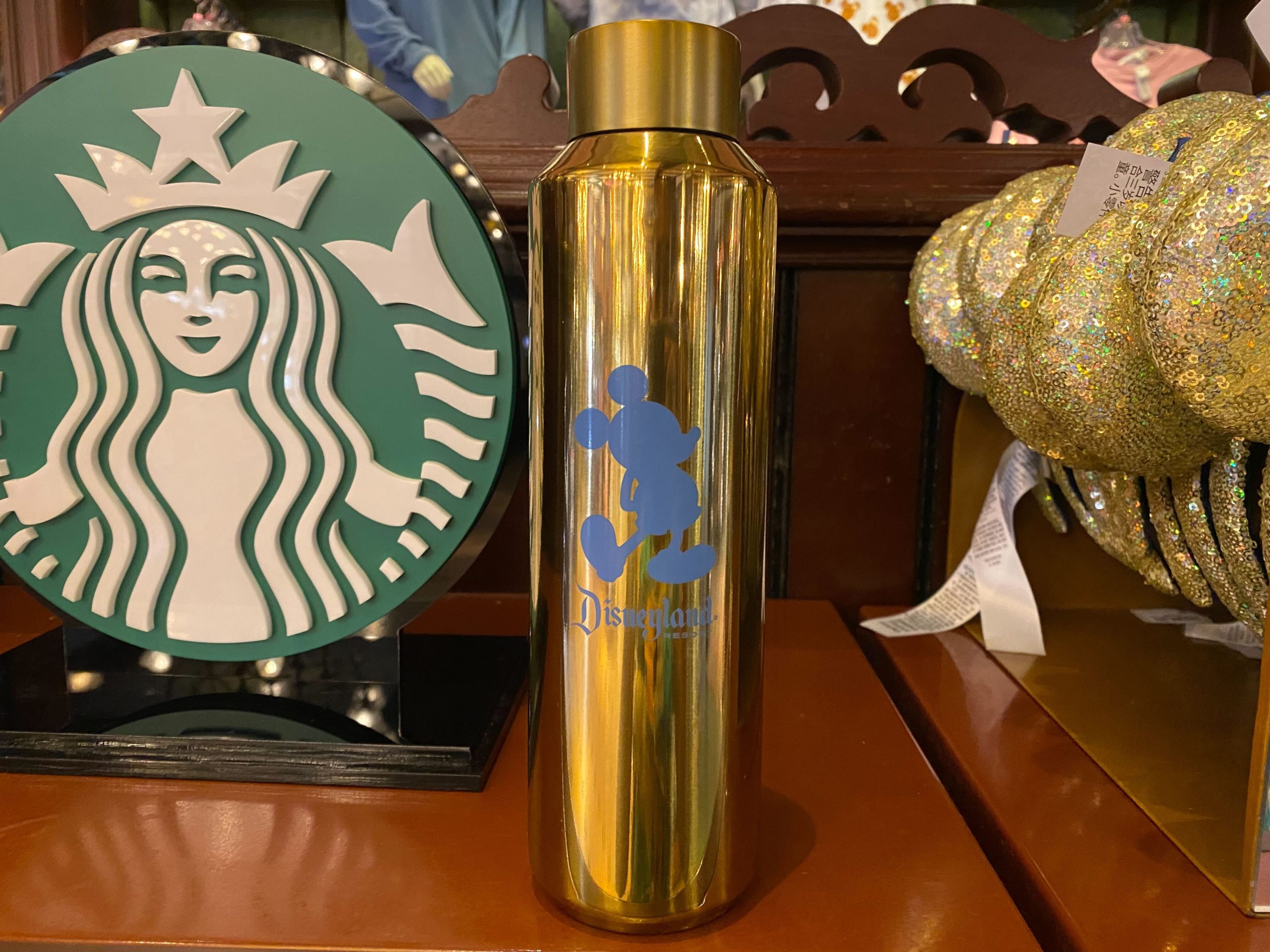 A shiny new golden Starbucks bottle is available at Disneyland Resort. This bottle is also available at Walt Disney World ...