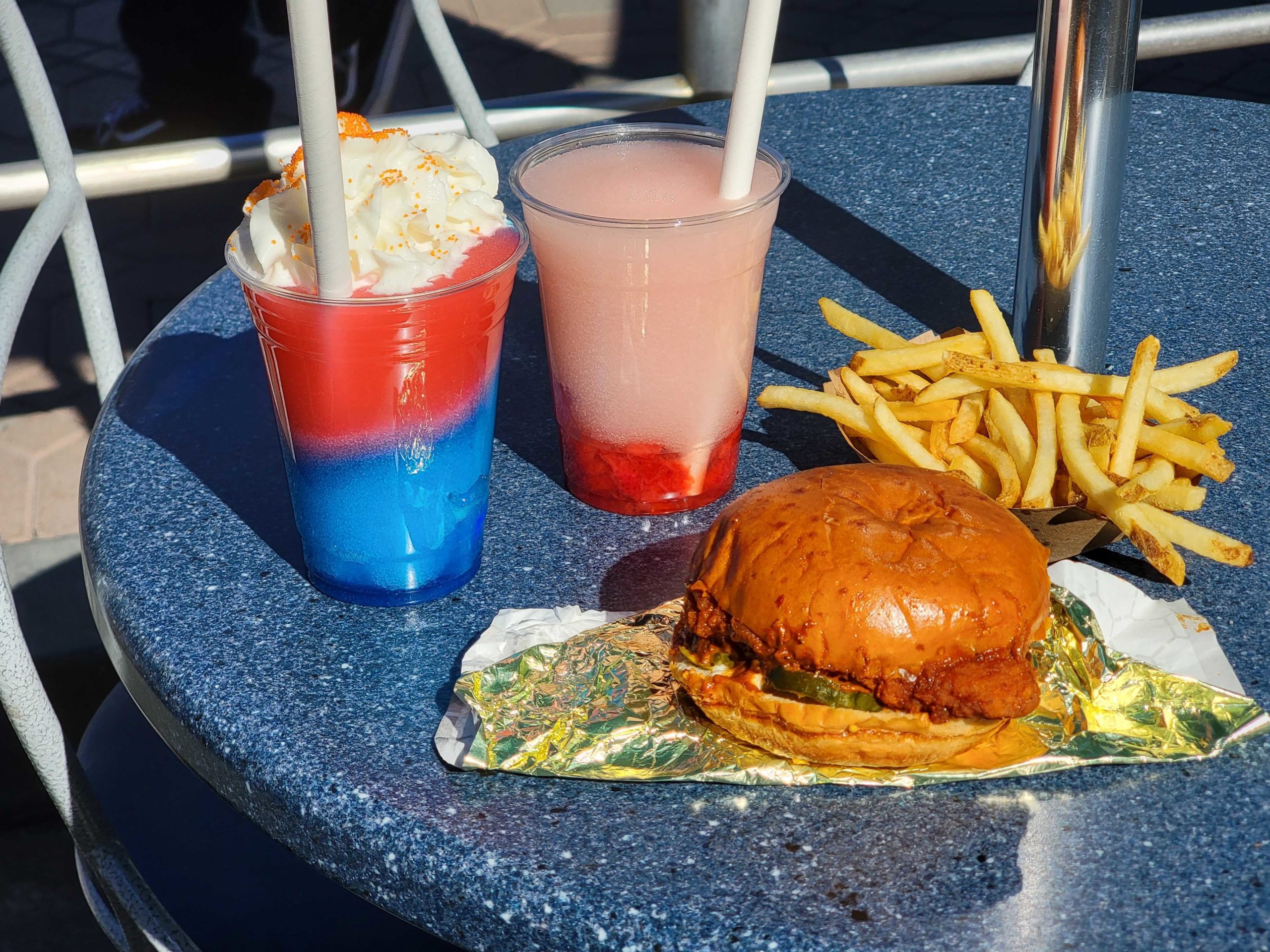REVIEW: New Magic Key Slush, Galactic Sunrise Slush, Spicy Nash Chicken Sandwich at Galactic Grill in Disneyland