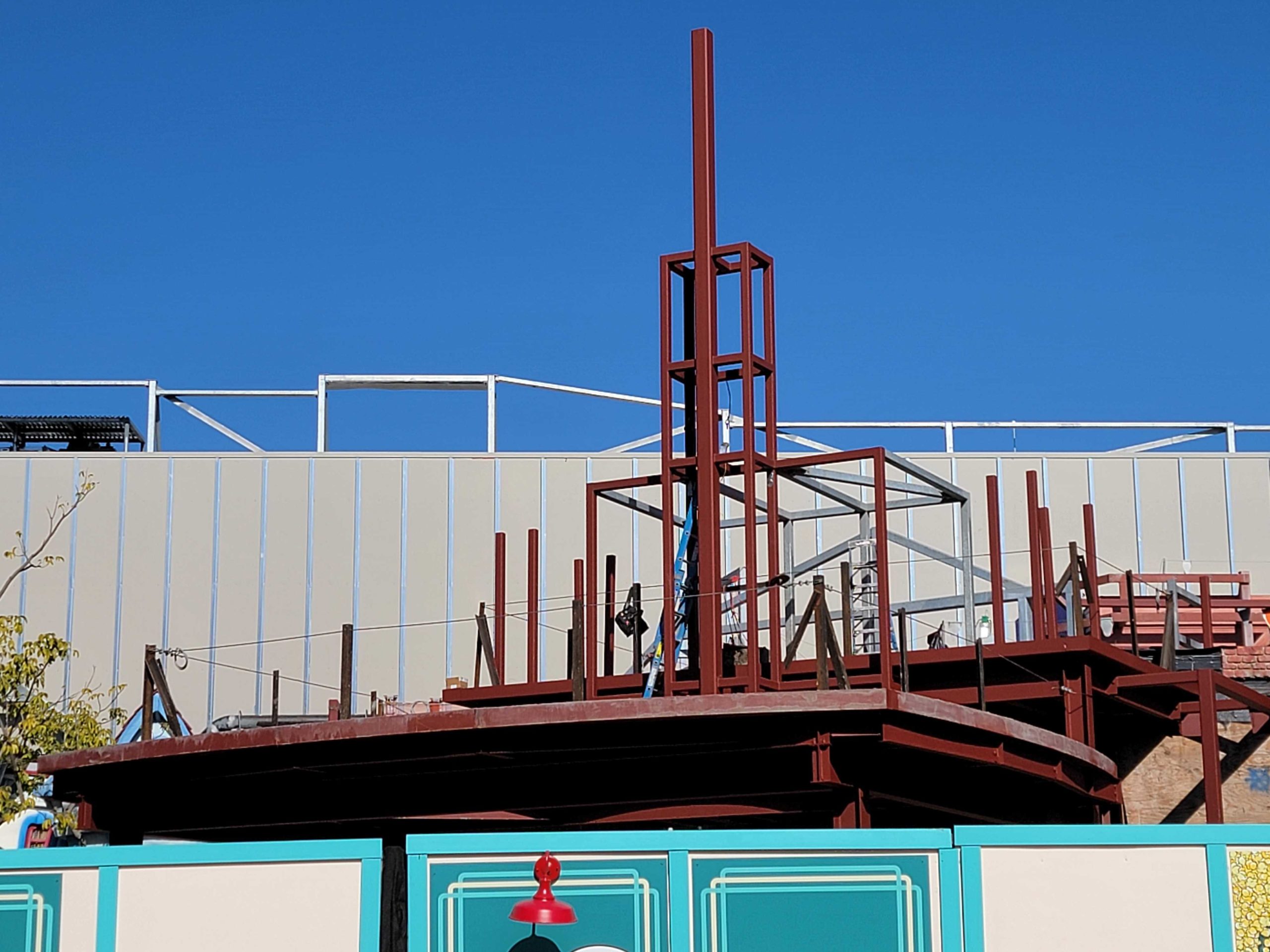 PHOTOS: Red Steel Installed on Mickey & Minnie’s Runaway Railway Façade at Disneyland