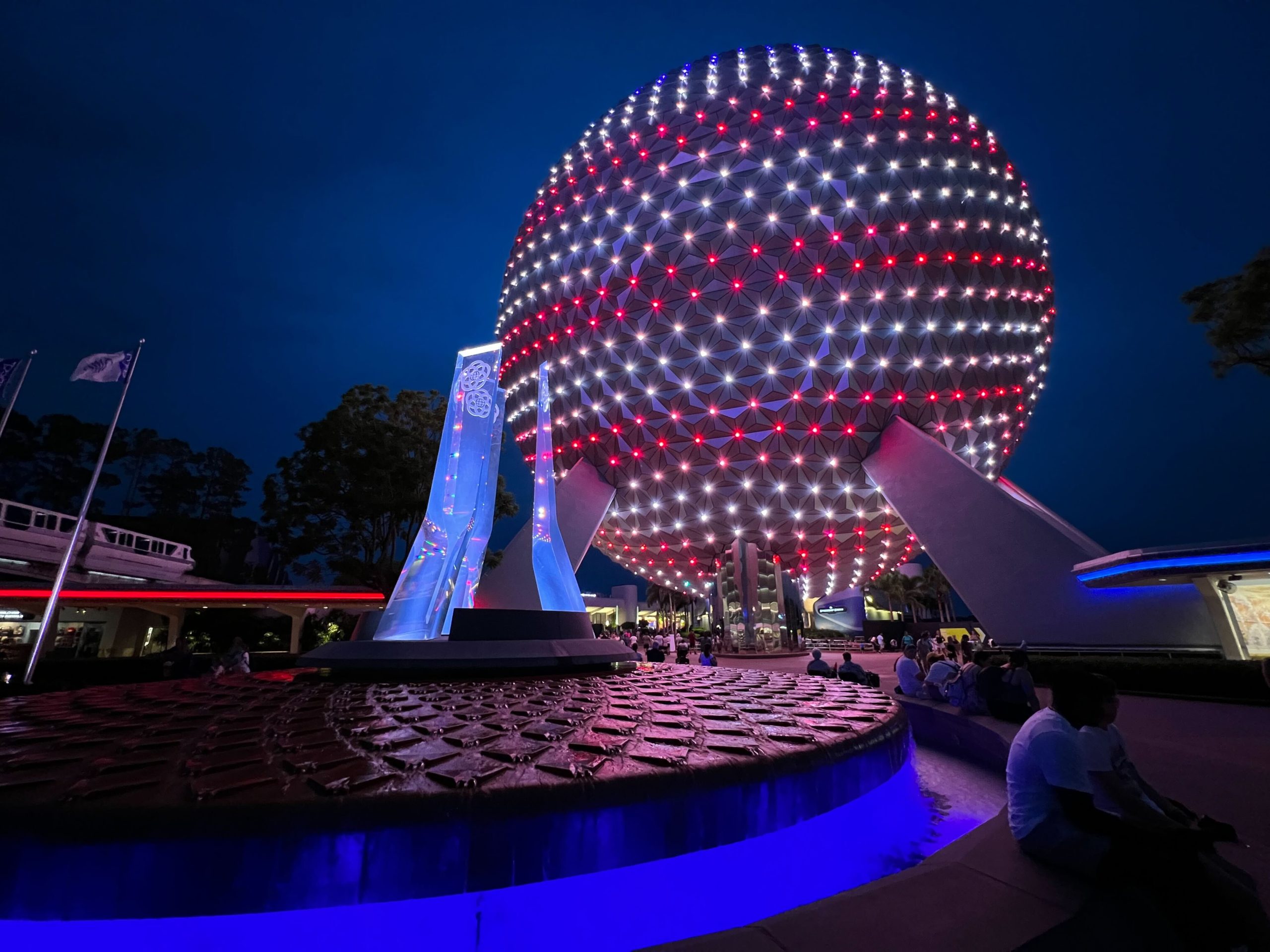 PHOTOS: Spaceship Earth and World Celebration Shine With Patriotic Colors for Fourth of July Weekend at EPCOT