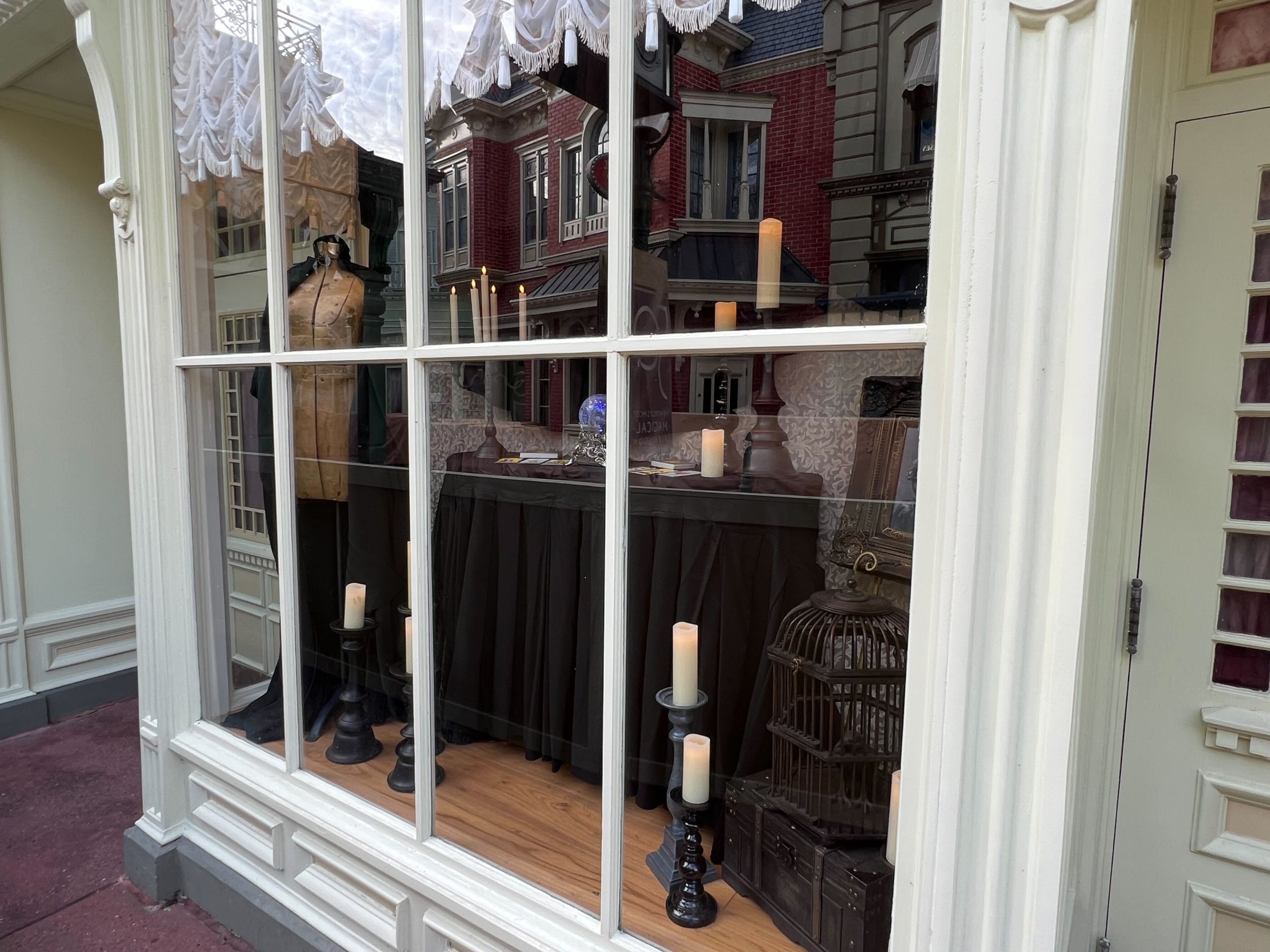 Witchy Decorations Added to Window on Center Street in Magic Kingdom for Halloween