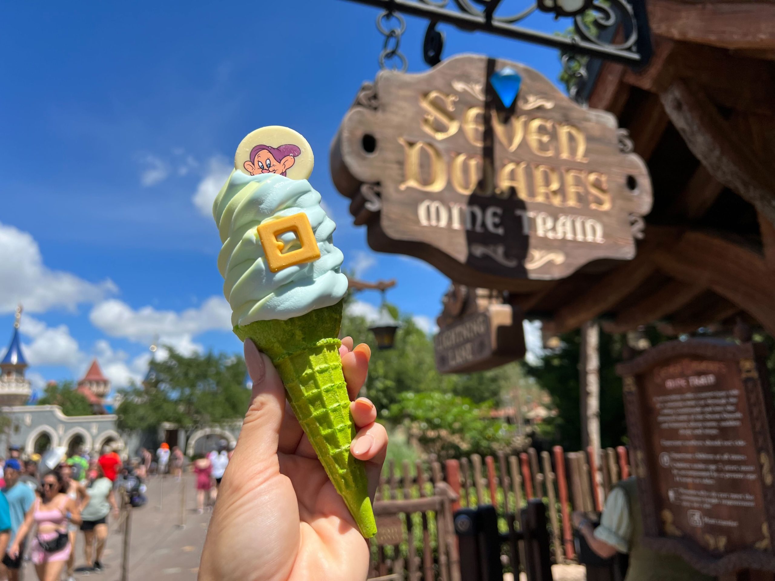 REVIEW: New ‘Seven Dwarfs’ Dopey DOLE Whip Lime and Blueberry Soft Serve Cone at Storybook Treats in Magic Kingdom