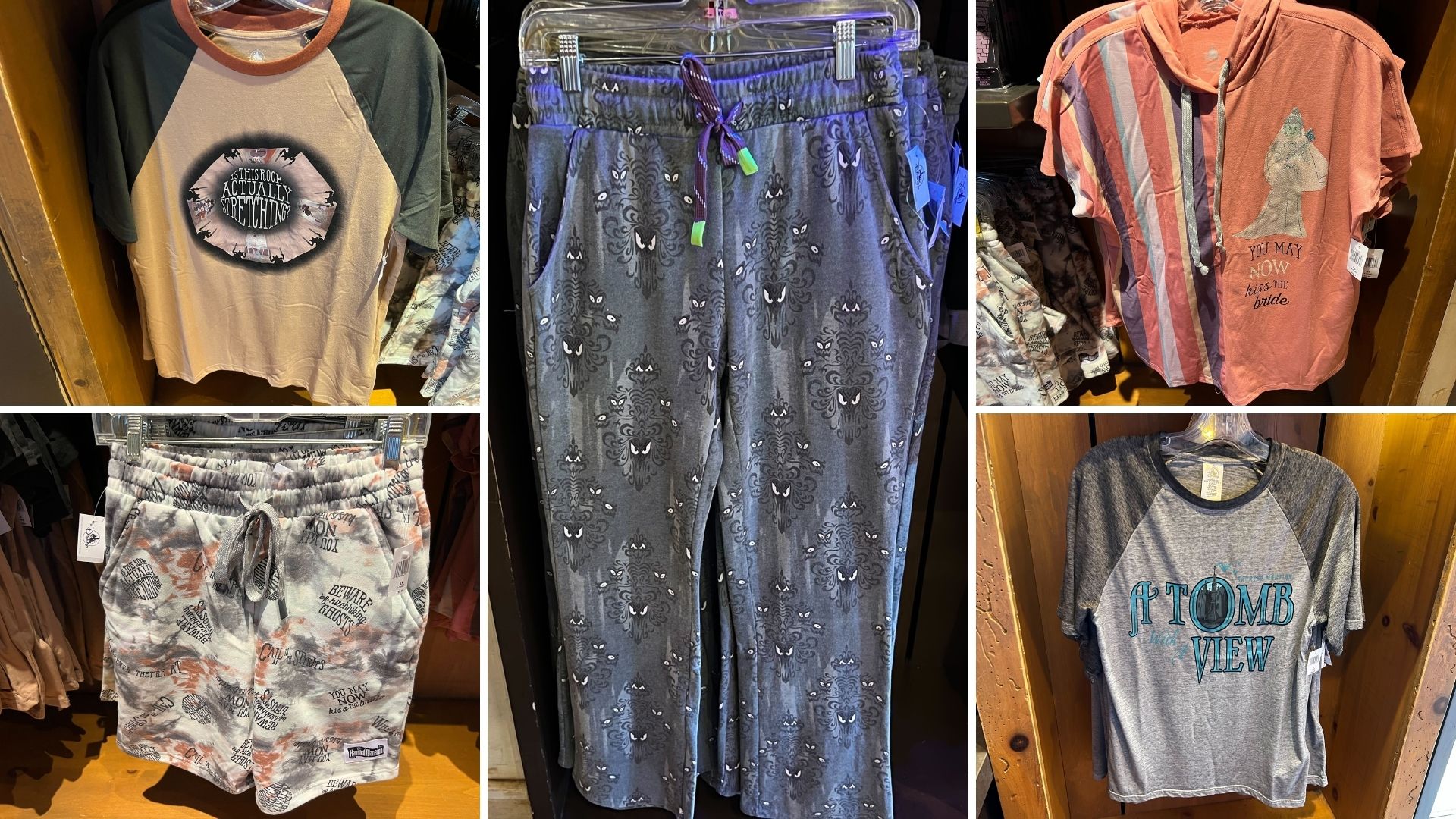 New Haunted Mansion Purple Wallpaper Pants, Stretching Room Tee, and More at Walt Disney World