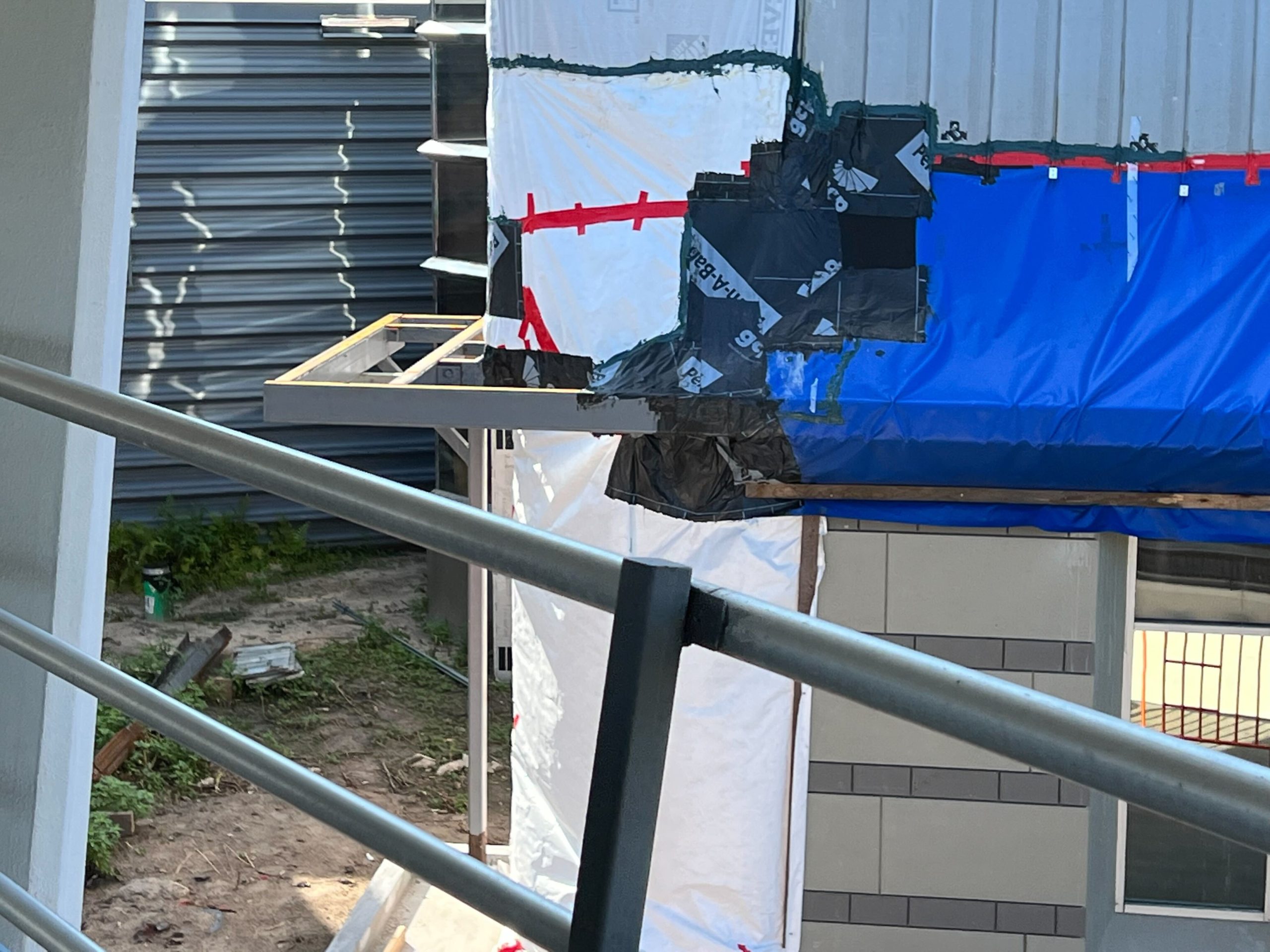 Crews have extended the small awning around one side of Tomorrowland Light & Power Co. in Magic Kingdom. The side ...