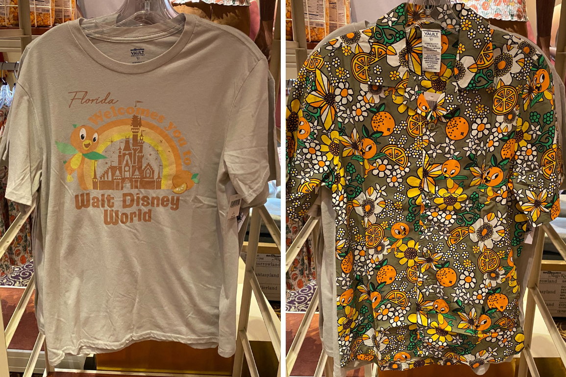 Orange Bird Vault Collection Tee and Button-Up Shirt Fly Into Magic Kingdom