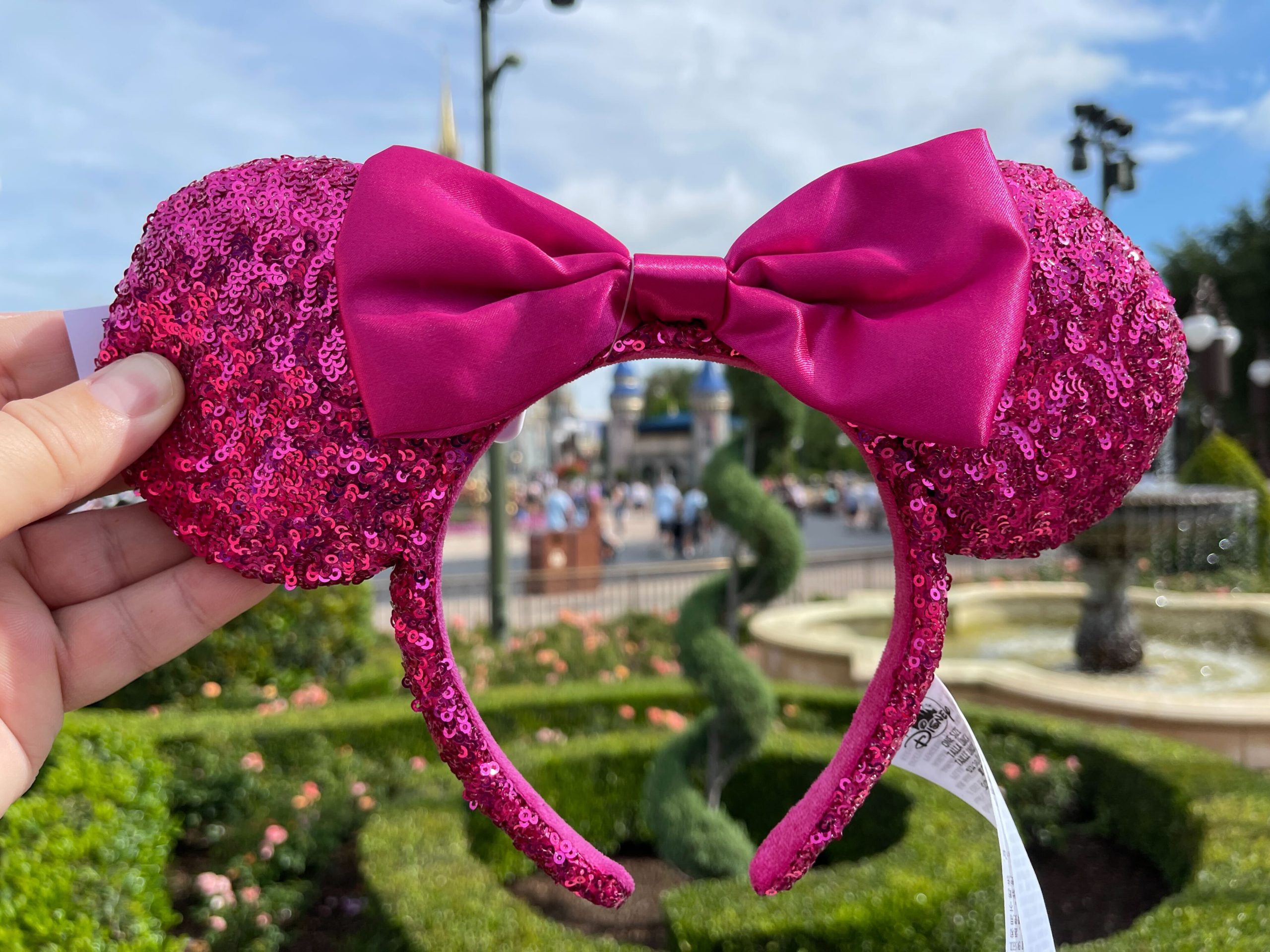 A new orchid pink sequined Minnie ear headband has arrived at Walt Disney World. We found these ears in the ...