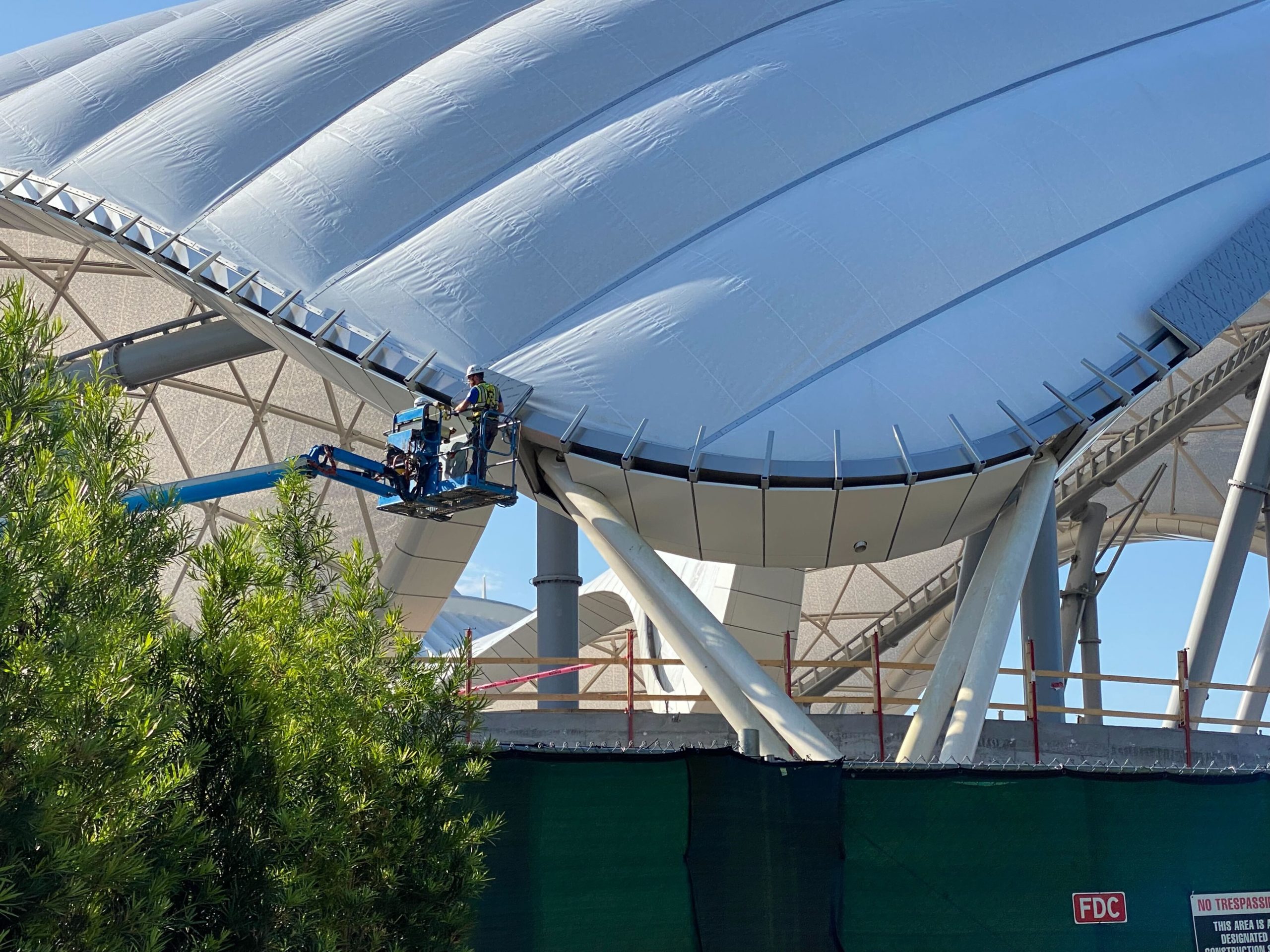 Almost the entire canopy of TRON Lightcycle / Run has been installed above the new coaster at Magic Kingdom. Crew ...