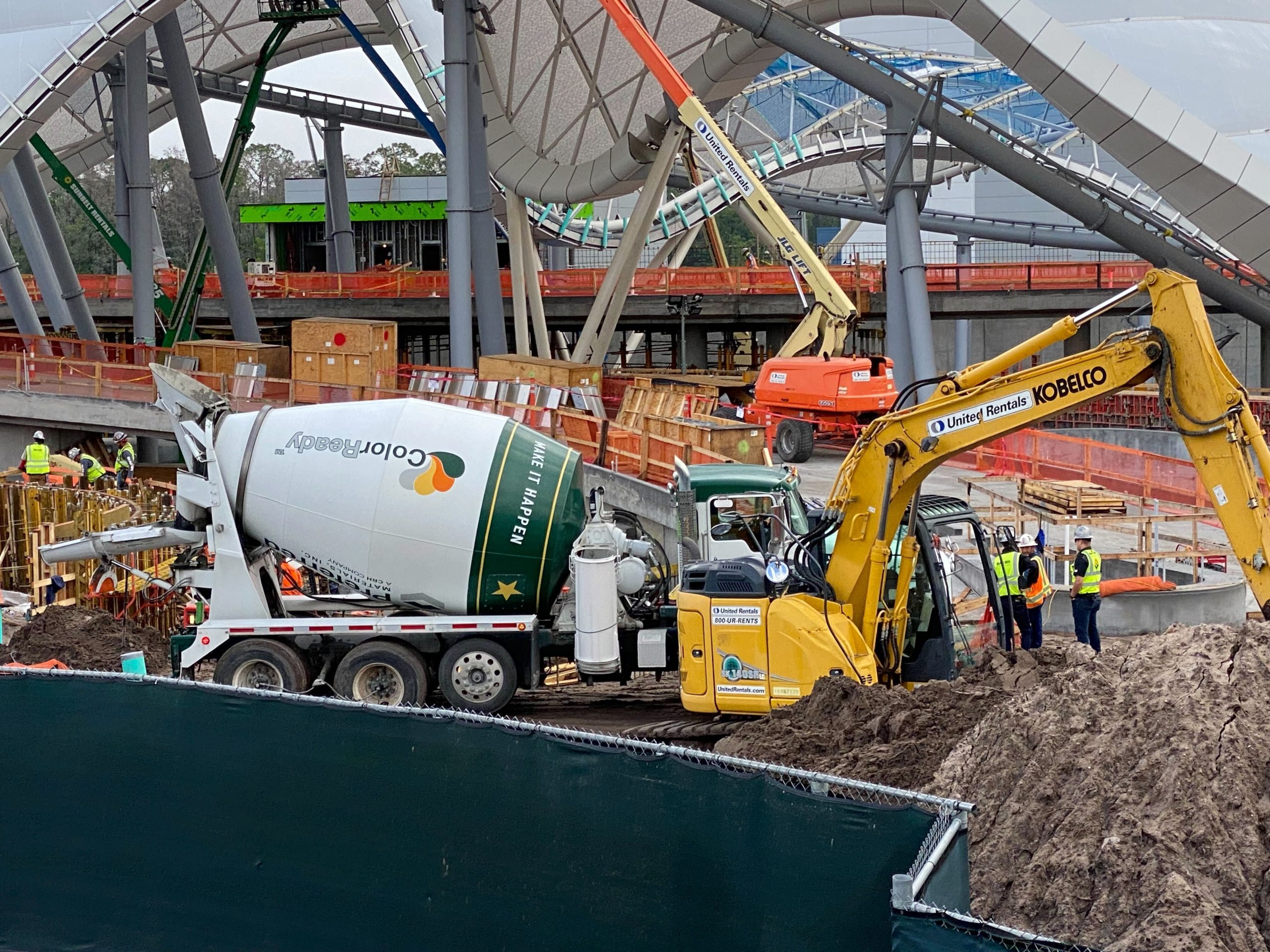 One Full Canopy Section Nears Completion, Crew Prepares to Pour Concrete at TRON Lightcycle Run at Magic Kingdom