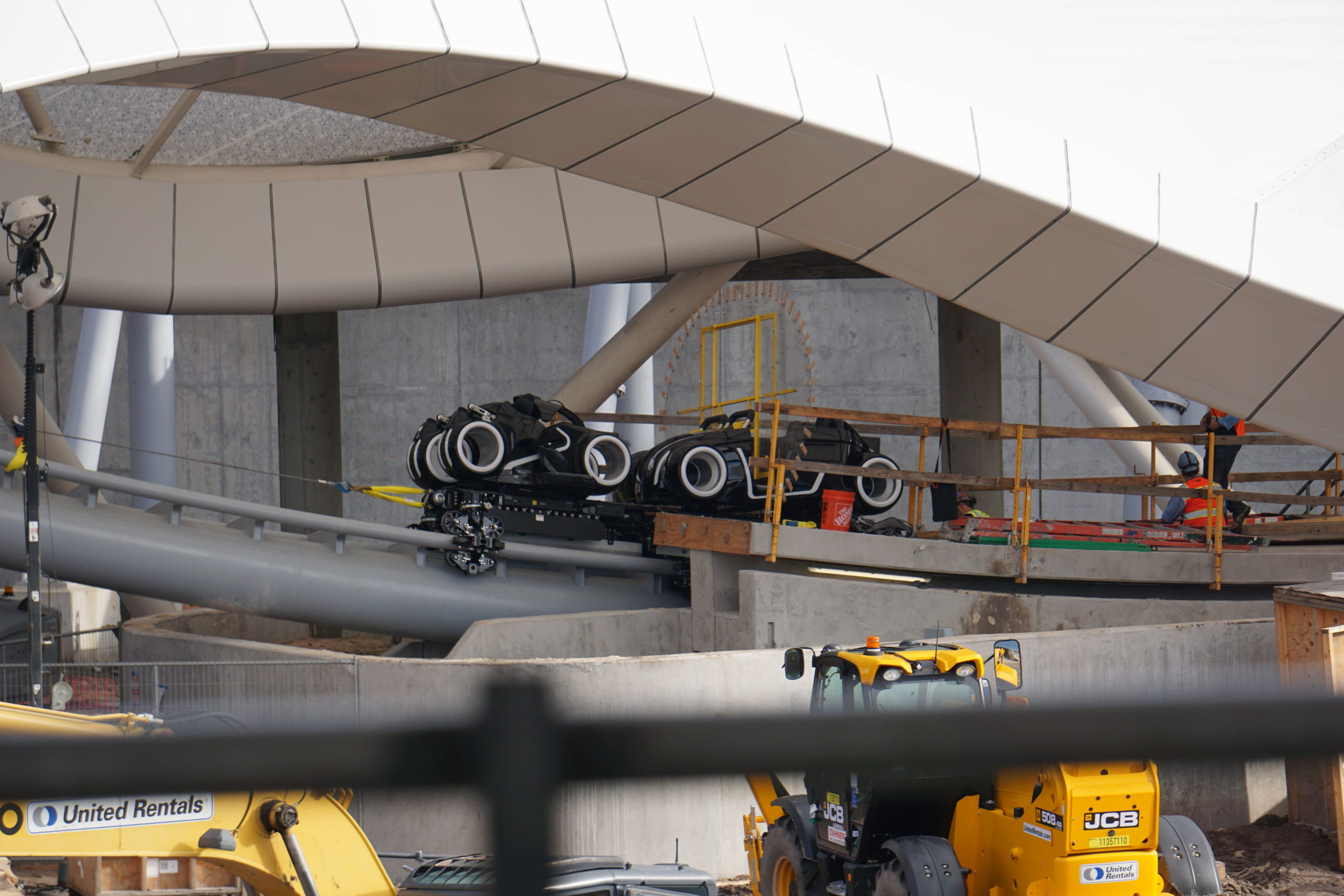 Ride Vehicles Spotted on the Track for Push-Pull Testing at TRON Lightcycle Run in Magic Kingdom