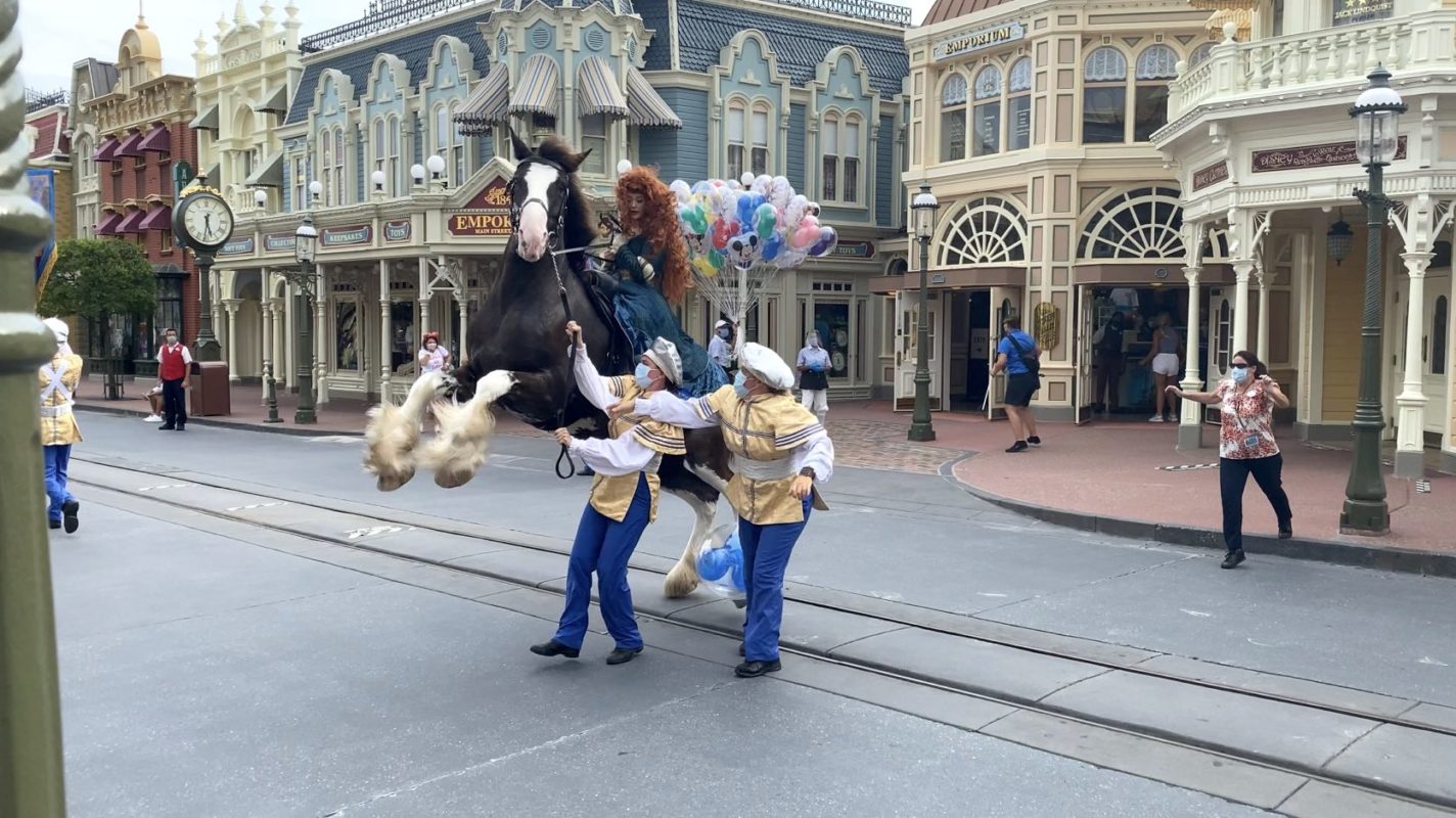 PHOTOS, VIDEO: Merida’s Horse Gets Startled During “The Royal Princess Processional” at the Magic Kingdom Reopening
