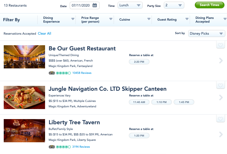 In-Park Dining Reservations Now Available for Select Guests at Walt Disney World