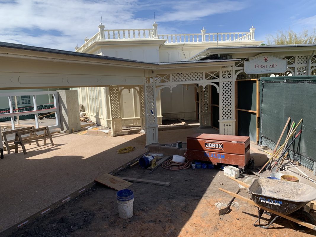 PHOTOS: Construction Walls Erected as Work Continues on Future Walkway Near Casey’s Corner in the Magic Kingdom
