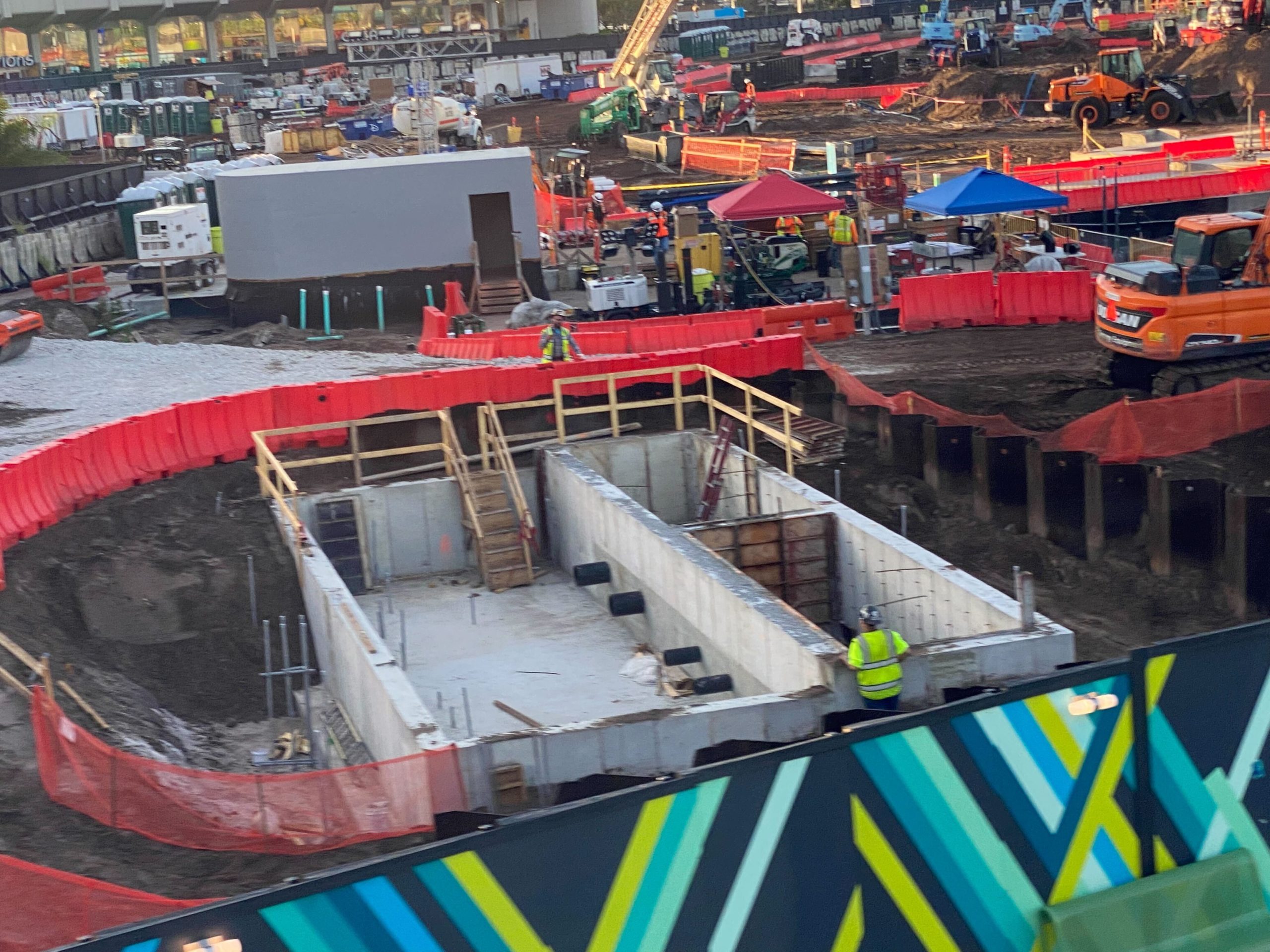 Construction walls were erected around a group of planters and trees in the World Nature neighborhood of EPCOT a few ...