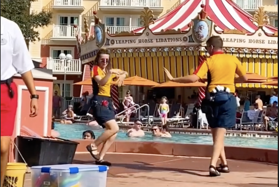 A guest spotted two poolside recreation Cast Members at Disney’s Boardwalk Inn putting on quite the fun show as they ...