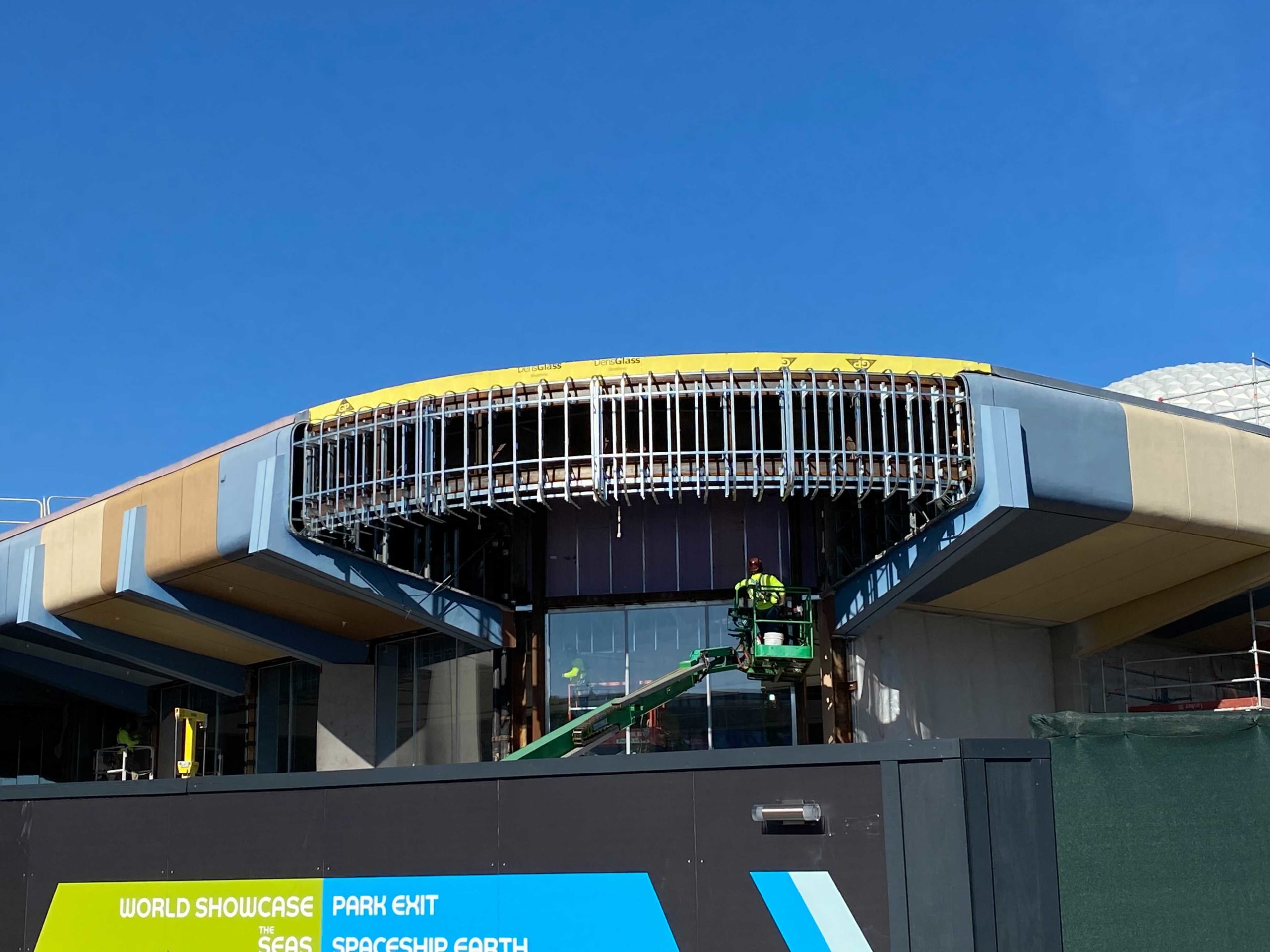 PHOTOS: Work Continues on Roof Overhang of Connections Café and Eatery at EPCOT