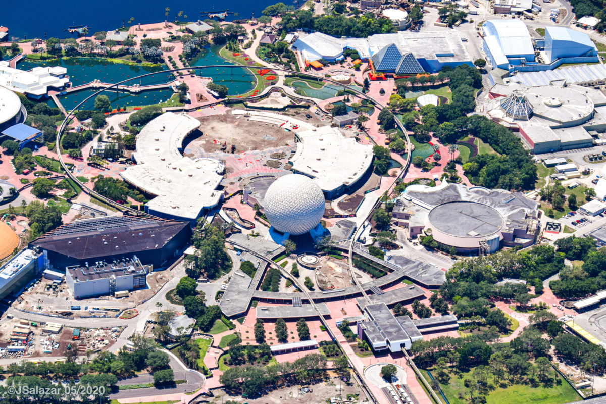 PHOTOS: See Stunning Aerial Photos of an Empty Future World at EPCOT with Construction Left at a Standstill During the Extended Parks Closure