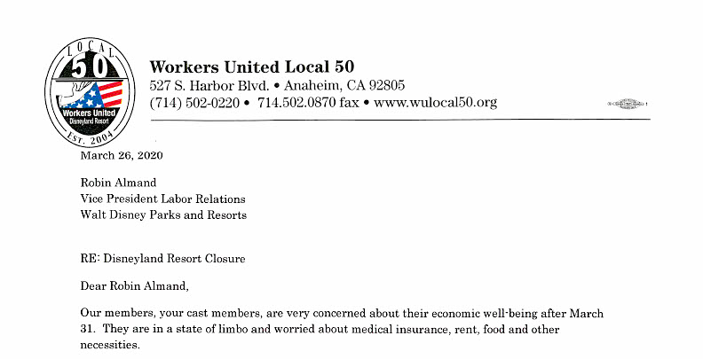 Cast Member Union Workers Demand Payment and Insurance Benefits Through April 30 In Light of Extended Disney Parks Closures