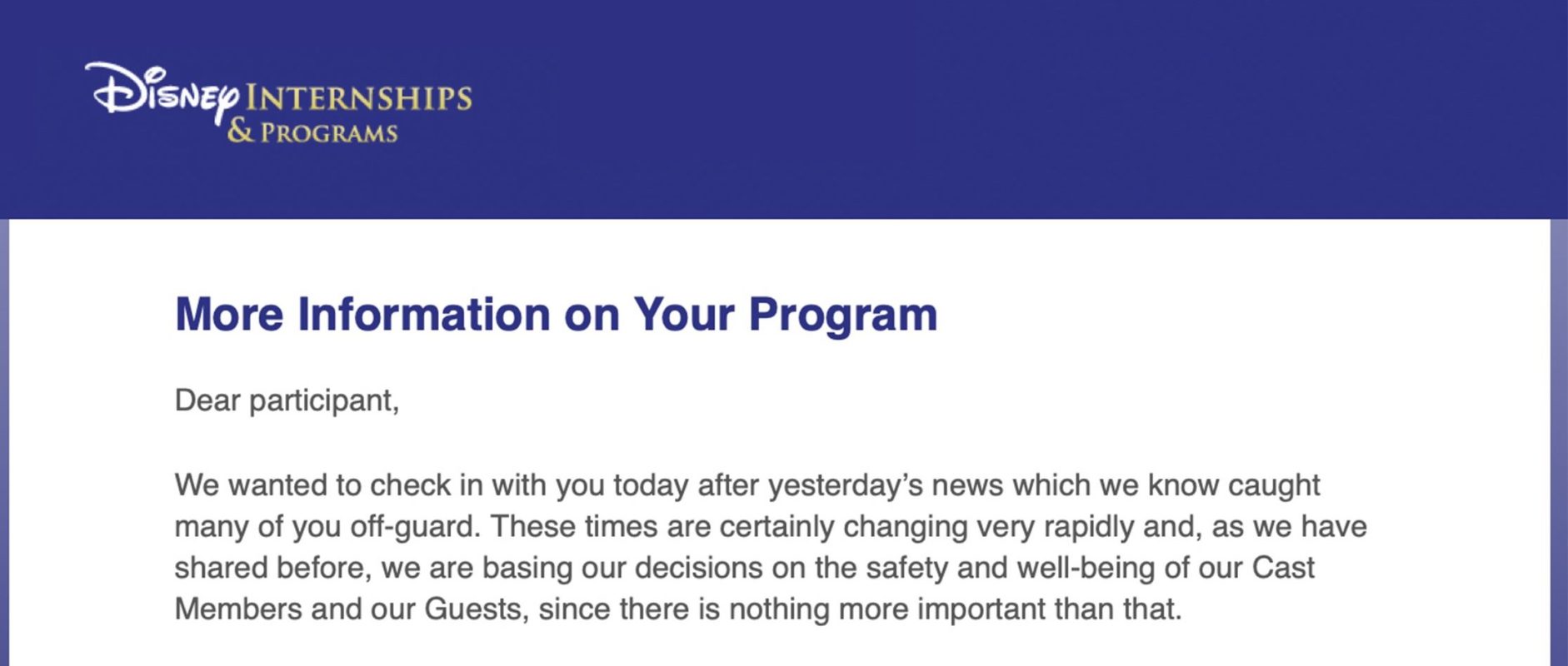 UPDATE: The Disney Internships & Programs department has released the following official statement to all of its Disney College Program ...