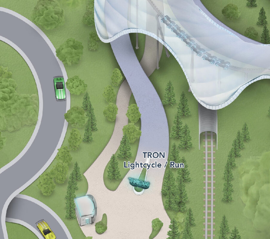 TRON Lightcycle Run and Energy Bytes Added to Magic Kingdom Map on My Disney Experience