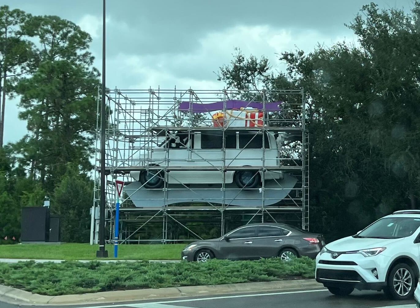 The Goofy driving a van Disney Vacation Club billboard at Walt Disney World is now being repainted after receiving primer ...
