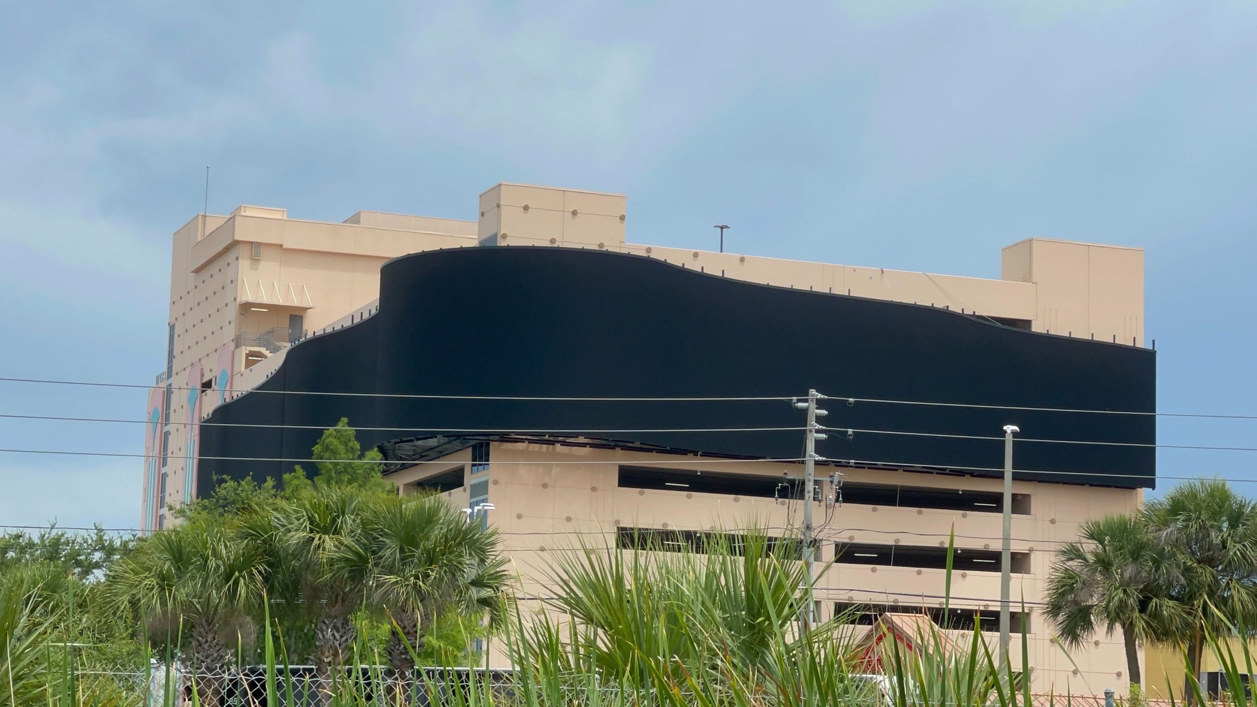 The ribbon-like screen for a Walt Disney World art installation has now been completely installed on the Hollywood Plaza parking ...