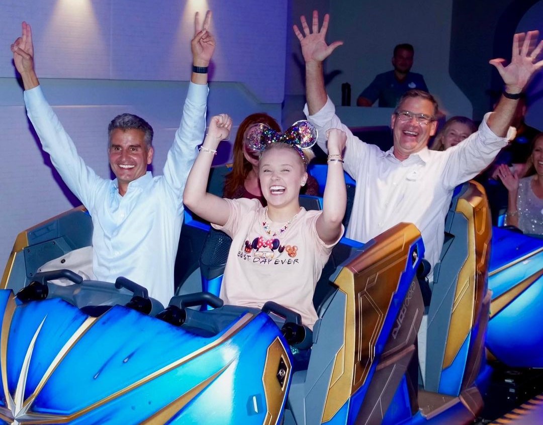JoJo Siwa Rides Guardians of the Galaxy: Cosmic Rewind With Josh D’Amaro and Jeff Vahle at EPCOT